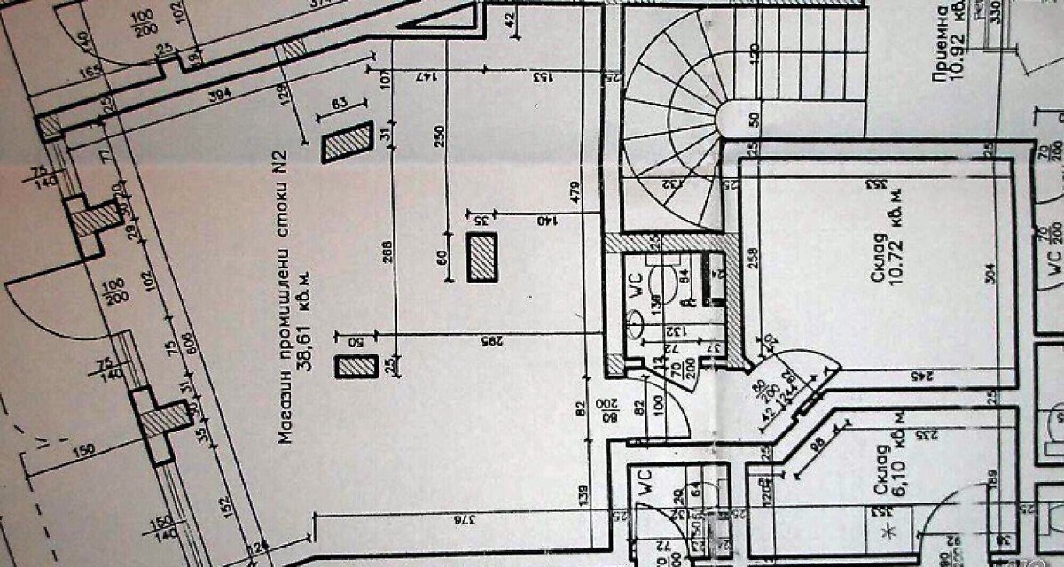 Помещението се състои от търговска зала, склад и баня.