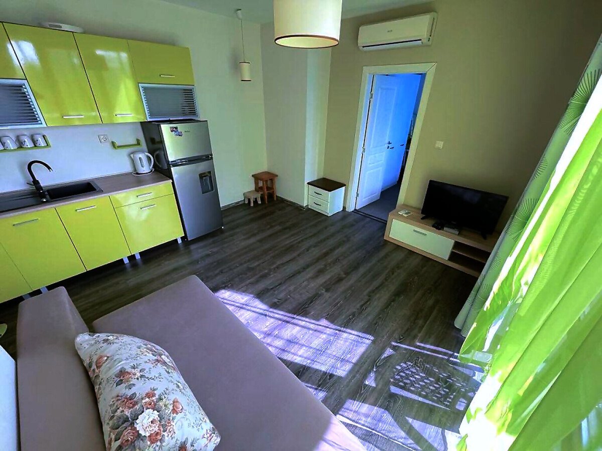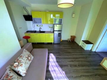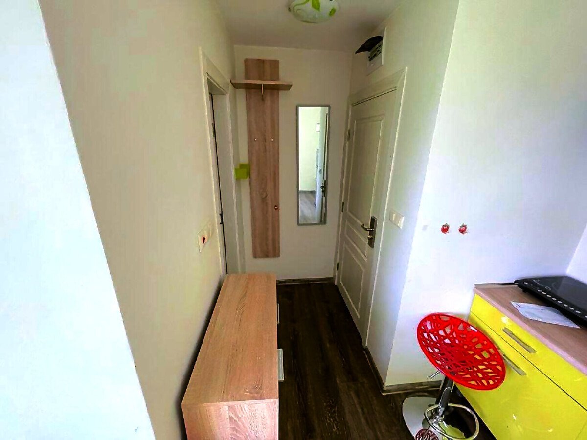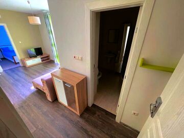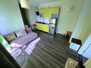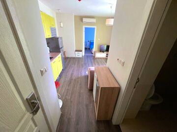 Апартаментът има следното разпределение – входно антре, всекидневна с кухненски бокс, спалня, баня с тоалетна и душ кабина, тераса.