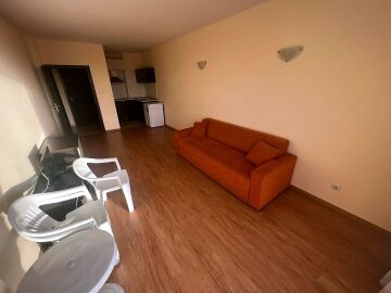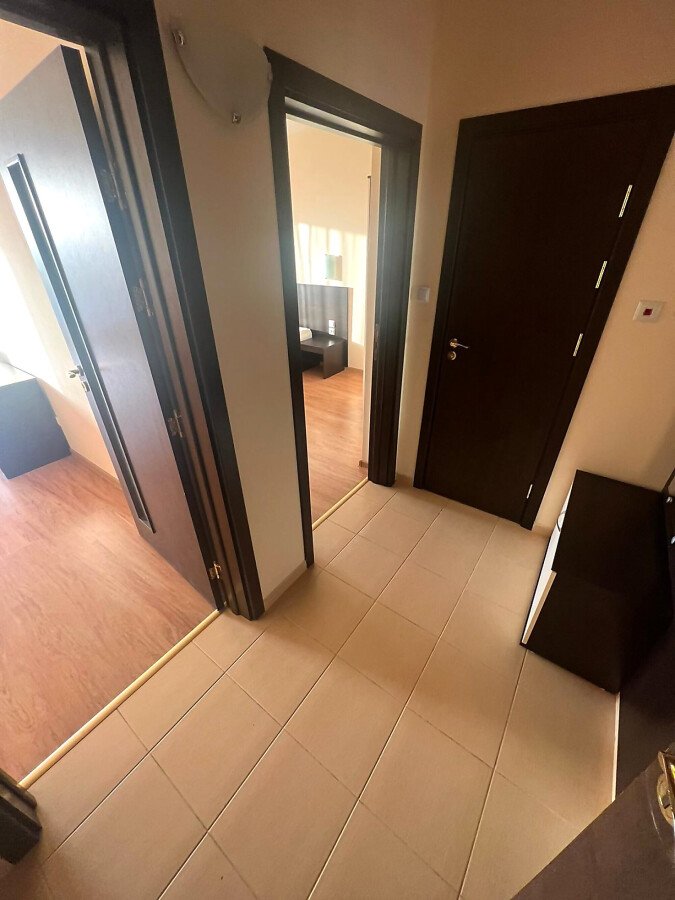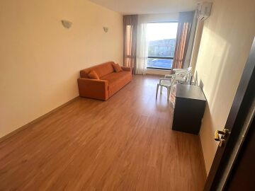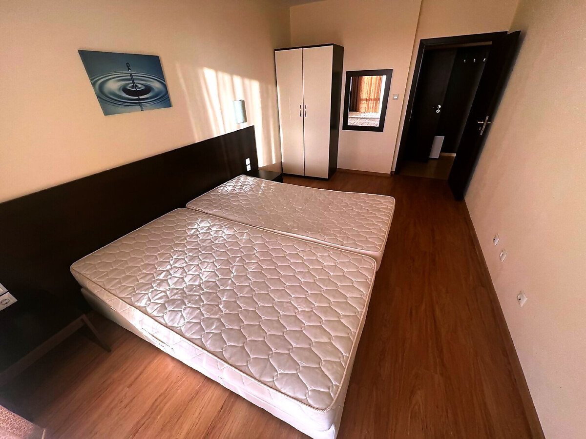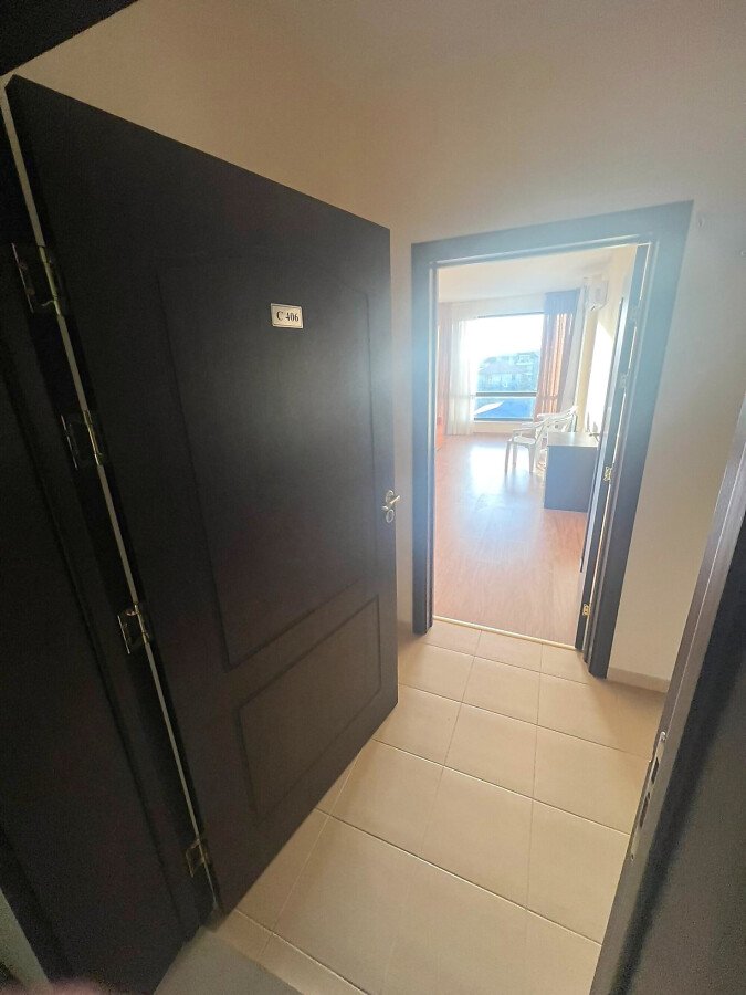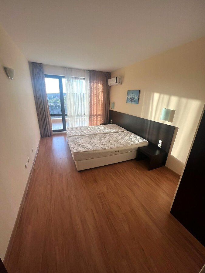 Апартаментът е просторен, със следното разпределение – входно антре, всекидневна с кухненски бокс, спалня, баня с тоалетна и душ кабина, голяма тераса. От терасата се разкрива красива панорамна гледка към морето, град Несебър и курорта Слънчев бряг, както и към озеленената вътрешна част и басейна на комплекса.