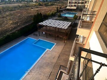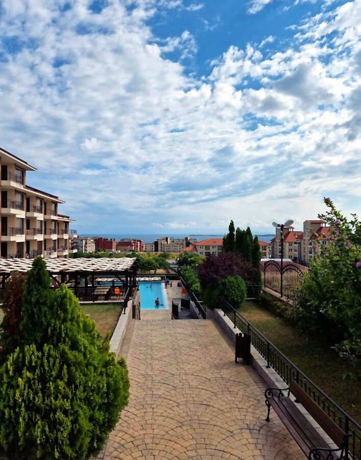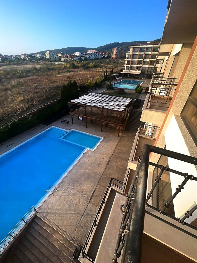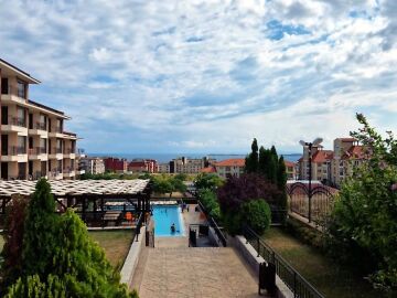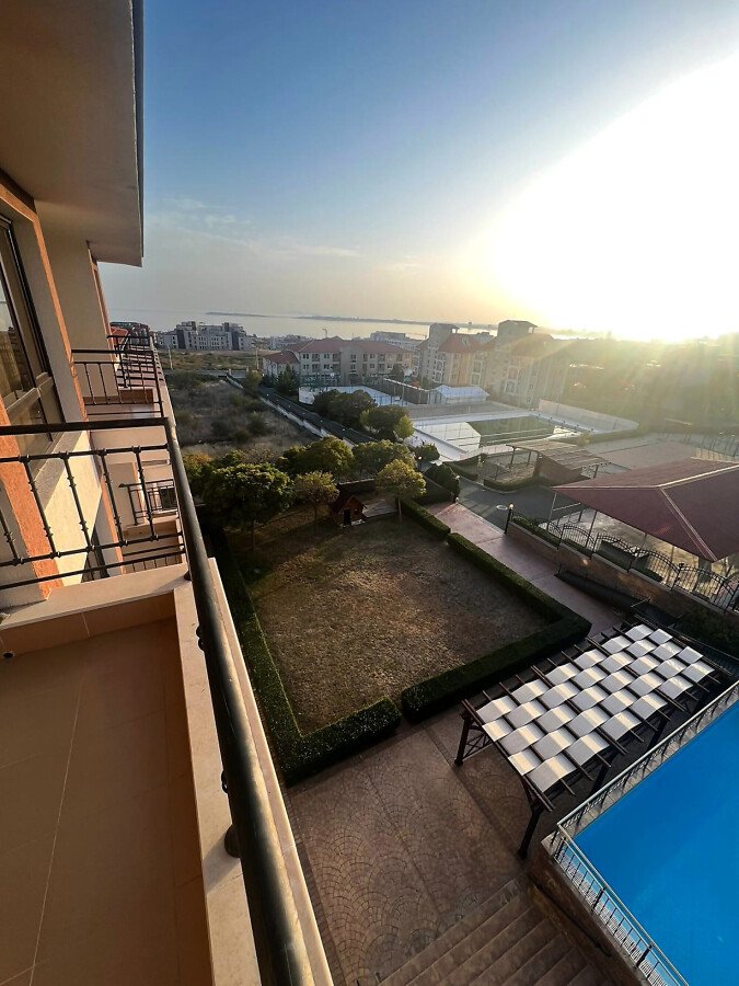 Предлагаме за продажба слънчев двустаен апартамент с панорамна гледка към морето и басейна в чудесния жилищен комплекс „Макон Резиденс“, разположен в един от най-популярните и елитни морски курорти – Свети Влас, само на 600 метра разстояние от морето и плажната ивица. Комплексът впечатлява с висококачествено строителство и отлично поддържана територия.