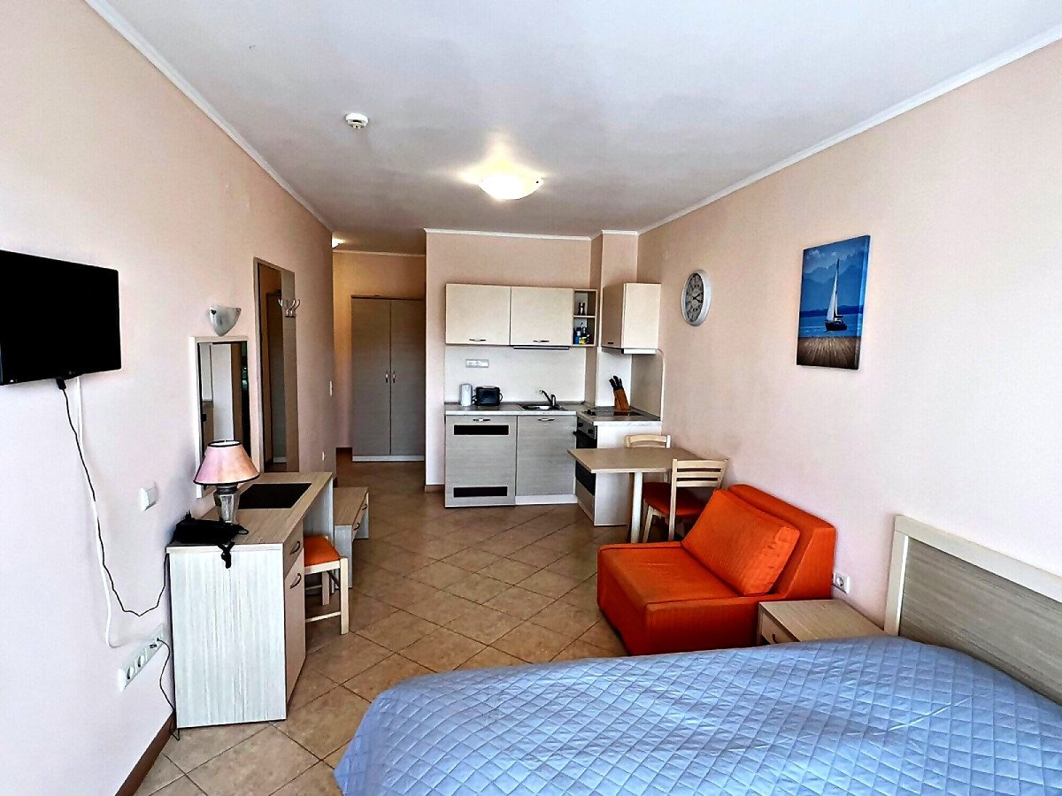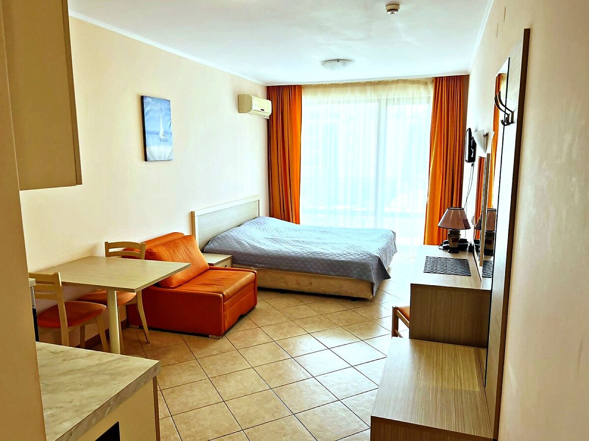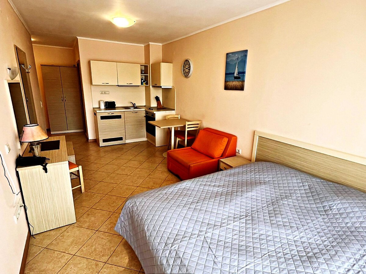 Предлагаме за продажба прекрасно студио в чудесния комплекс „Роял Сън“, разположен в един от най-модерните и атрактивни морски курорти на българското крайбрежие – Слънчев бряг, на 300 метра разстояние от плажната ивица.