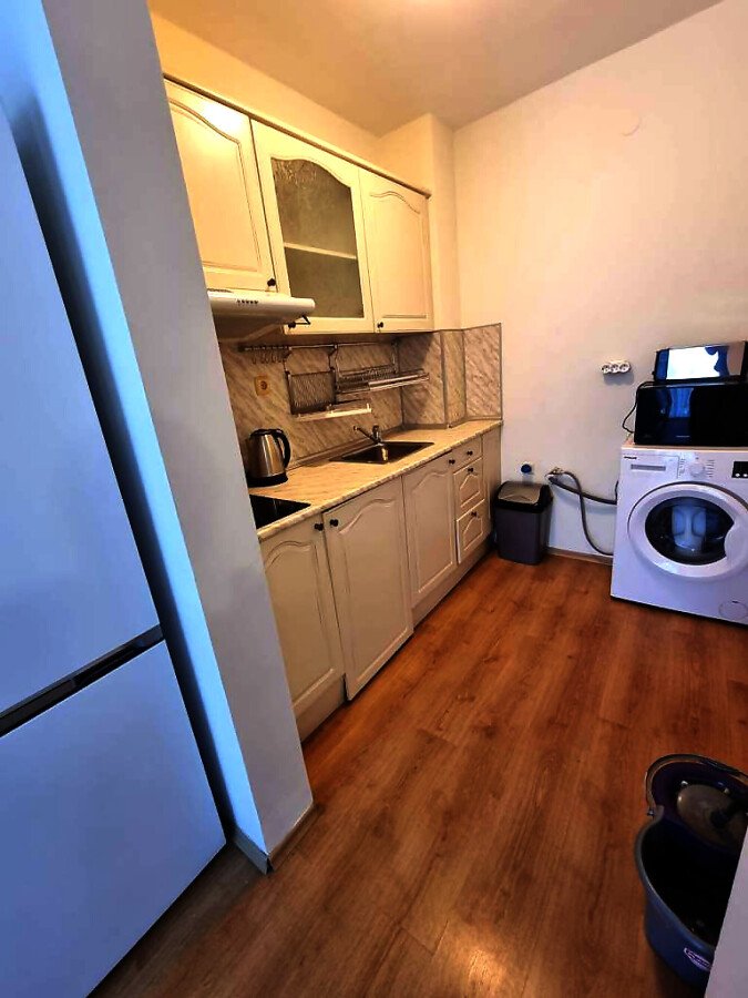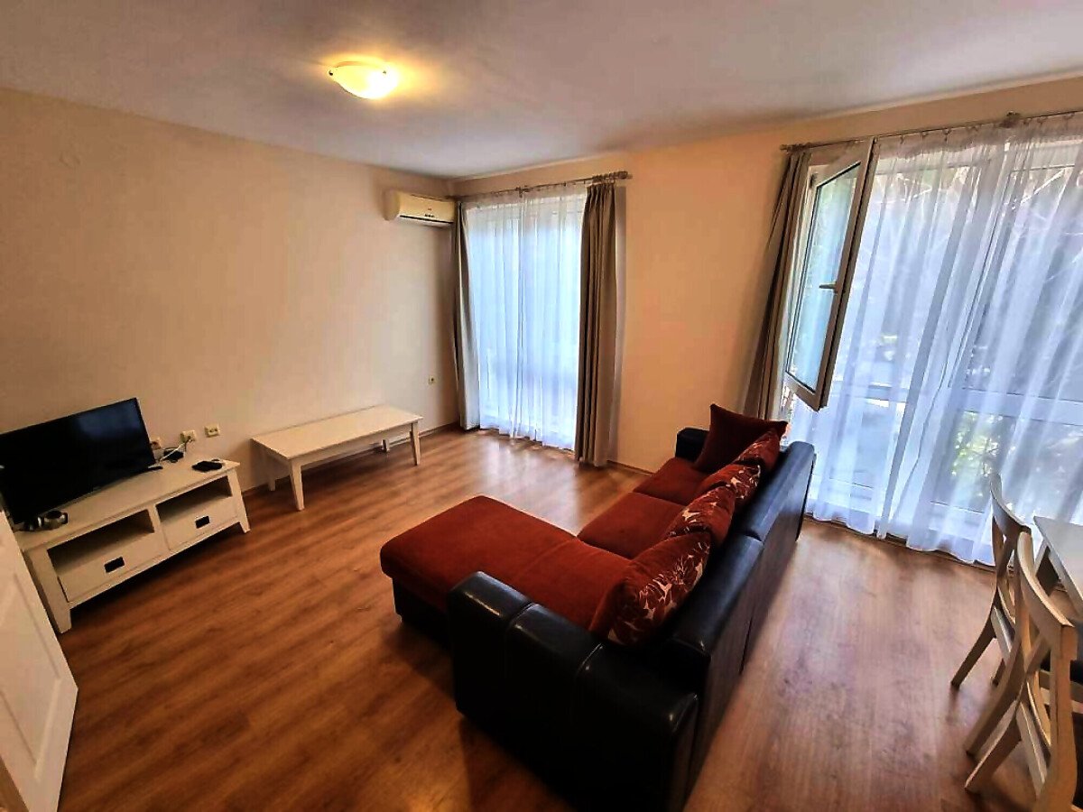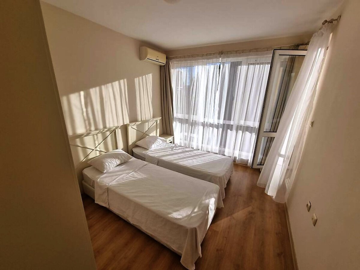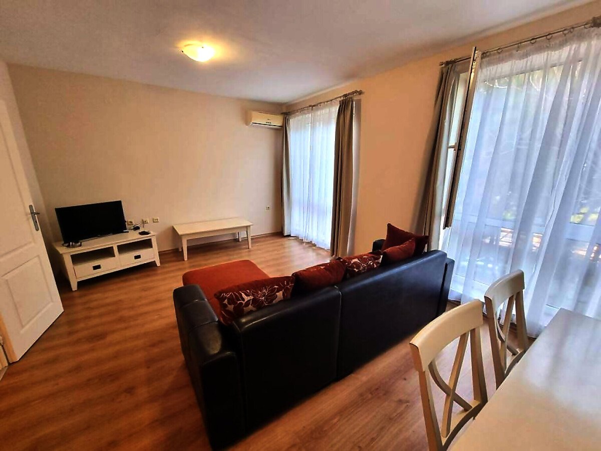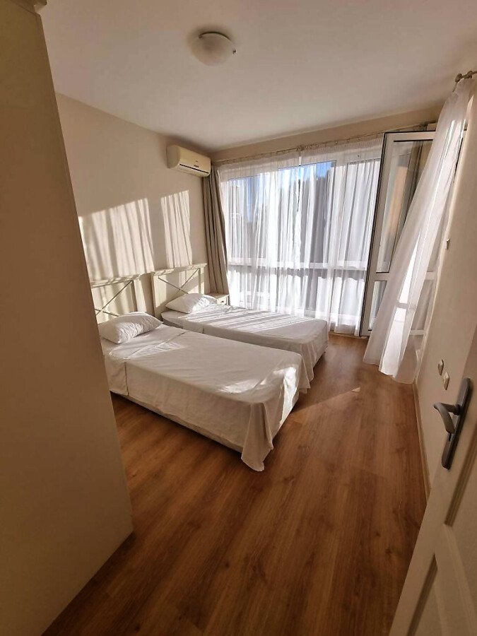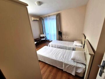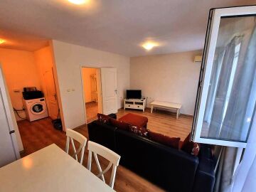 Апартаментът е много функционален, разположен на четвърти етаж в сграда с асансьор и следното разпределение – входно антре, всекидневна с обособен кухненски бокс и кът за хранене, две спални, баня с тоалетна, тераса. Продава се обзаведен с качествени мебели и оборудван с техника, готов за нанасяне, а годишната такса поддръжка на жилището е в размер от 13 евро на кв.м.