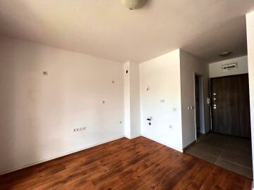 Студиото се състои от входно антре, голяма всекидневна, баня с тоалетна, тераса. Банята е напълно завършена, в апартамента има подови настилки и дограма, както и метална входна врата.