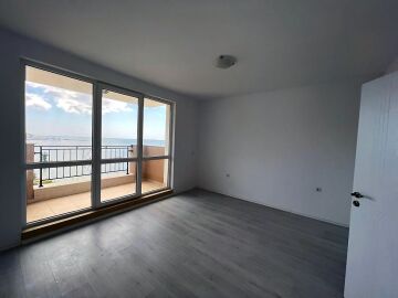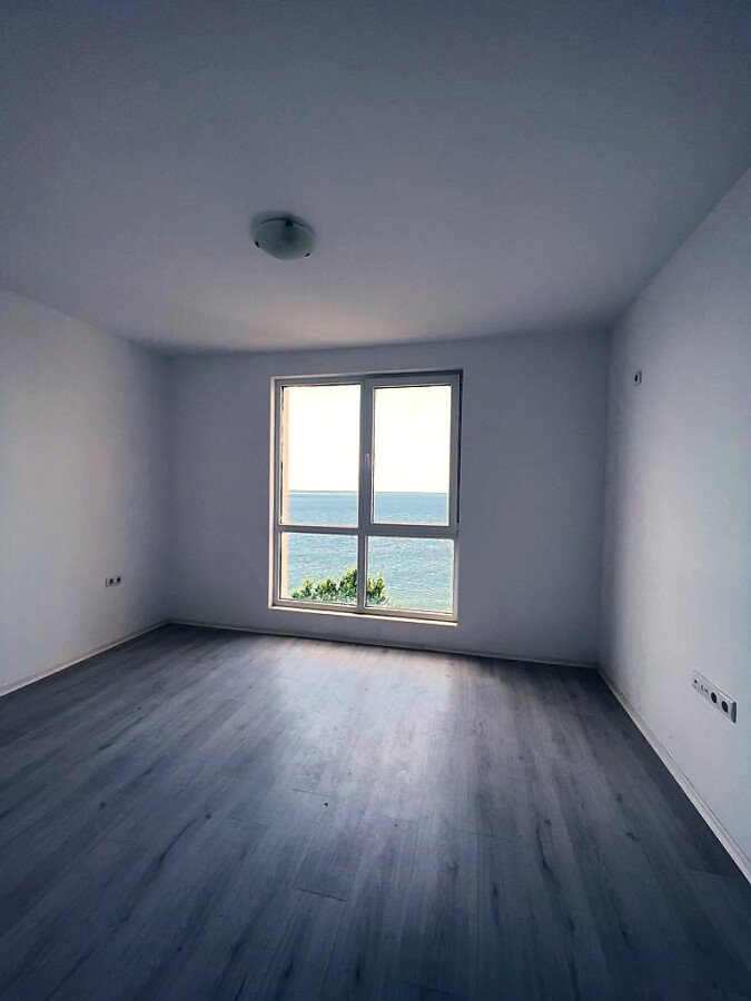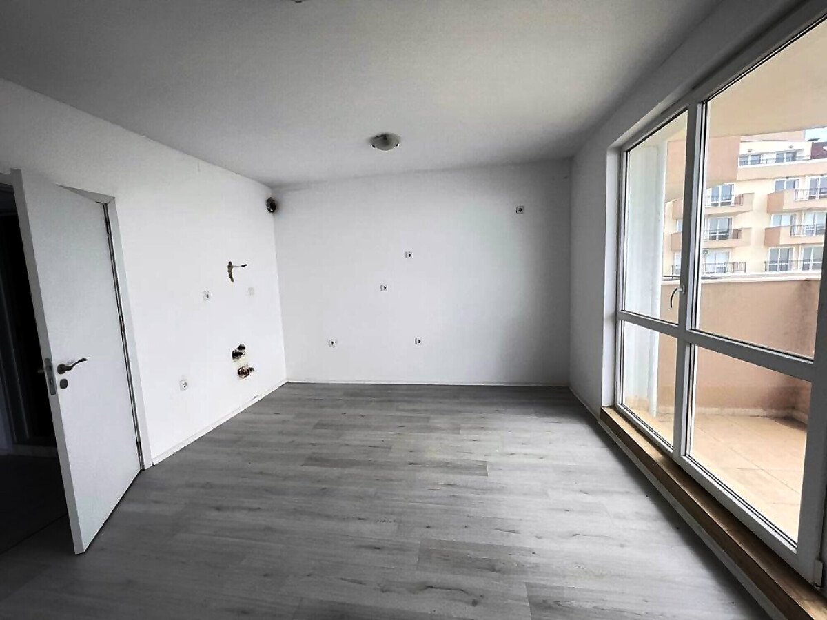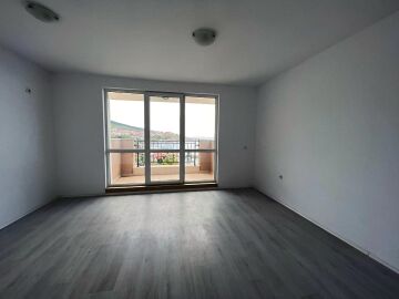 Апартаментът е светъл и функционален, със следното разпределение – входно антре, две стаи, баня с тоалетна, тераса с гледка към басейна, морето и планината. В жилището има подови настилки и качествена дограма, както и врати. Банята е напълно завършена.