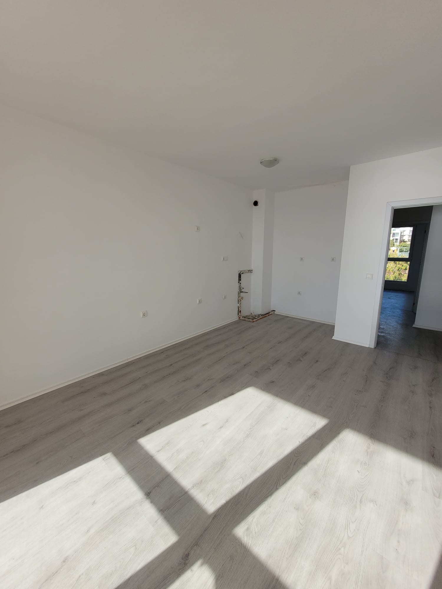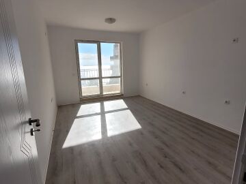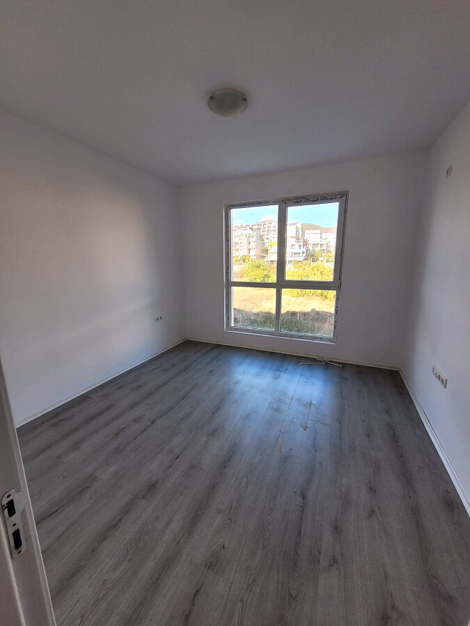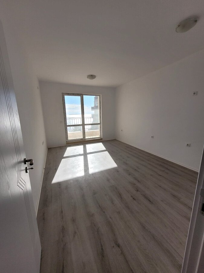Апартаментът е светъл и функционален, със следното разпределение – входно антре, две стаи, баня с тоалетна, тераса с гледка към басейна, морето и планината. В жилището има подови настилки и качествена дограма, както и врати. Банята е напълно завършена.