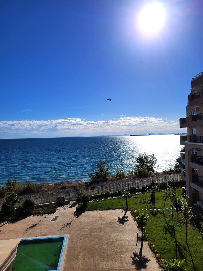 Предлагаме за продажба хубав двустаен апартамент с панорамна гледка към морето и планината в прекрасния комплекс „Ипанема Бийч“. Разположен на първа линия в курорта Свети Влас, комплексът впечатлява с красиви гледки, отлична локация и непосредствена близост до плажната ивица. Благодарение на това, имотът е много подходящ както за летен отдих и отдаване под наем, така и за целогодишно живеене.