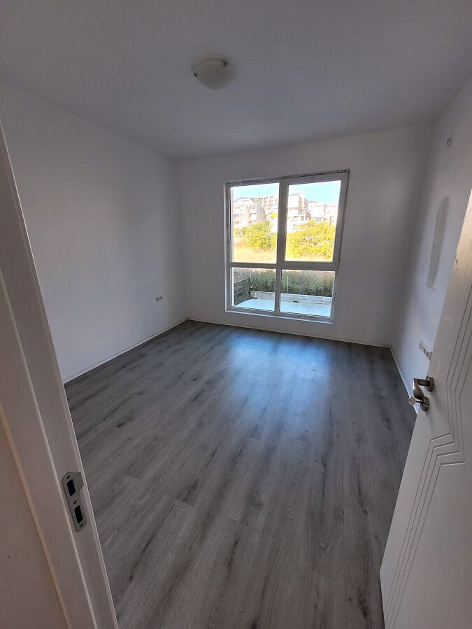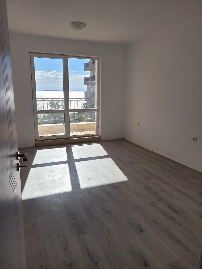Апартаментът е светъл и функционален, със следното разпределение – входно антре, две стаи, баня с тоалетна, тераса с гледка към басейна, морето и планината. В жилището има подови настилки и качествена дограма, както и врати. Банята е напълно завършена.