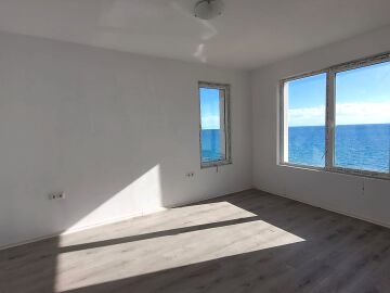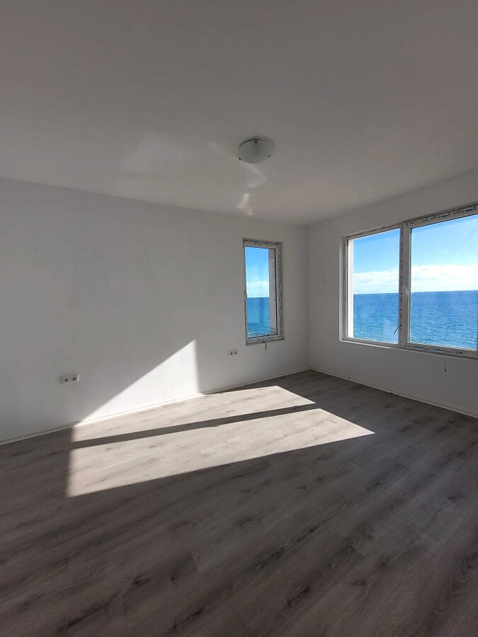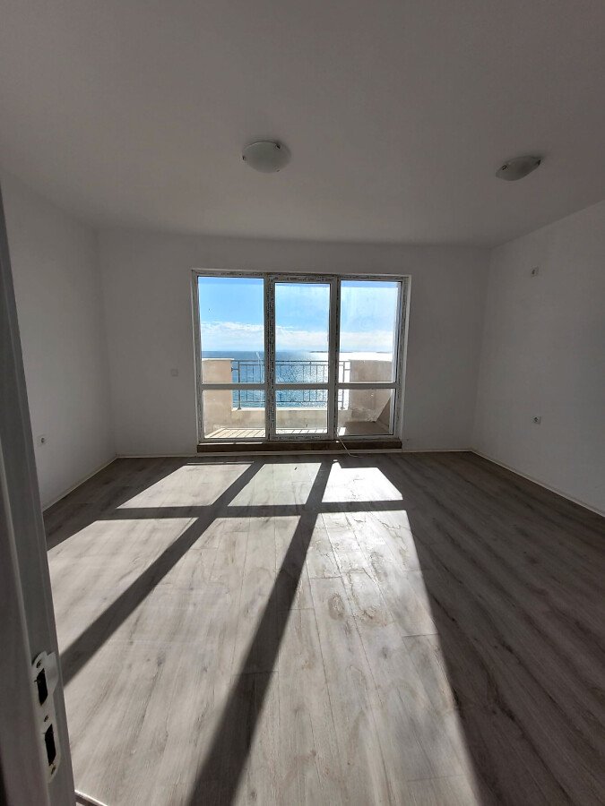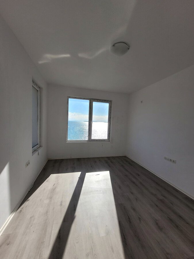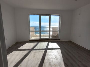 Апартаментът е светъл и функционален, със следното разпределение – входно антре, две стаи, баня с тоалетна, тераса с гледка към басейна, морето и планината. В жилището има подови настилки и качествена дограма, както и врати. Банята е напълно завършена.