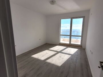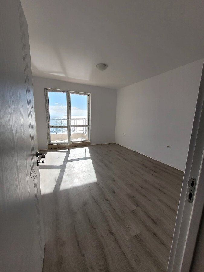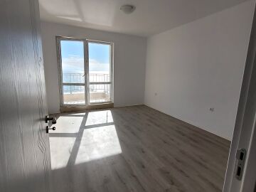 Апартаментът е светъл и функционален, със следното разпределение – входно антре, две стаи, баня с тоалетна, тераса с гледка към басейна, морето и планината. В жилището има подови настилки и качествена дограма, както и врати. Банята е напълно завършена.