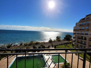 Предлагаме за продажба хубав двустаен апартамент с панорамна гледка към морето в прекрасния комплекс „Ипанема Бийч“. Разположен на първа линия в курорта Свети Влас, комплексът впечатлява с красиви гледки, отлична локация и непосредствена близост до плажната ивица. Благодарение на това, имотът е много подходящ както за летен отдих и отдаване под наем, така и за целогодишно живеене.