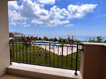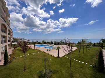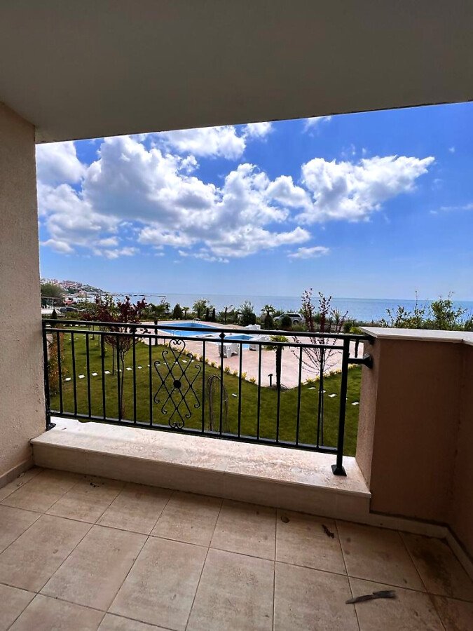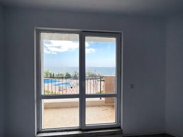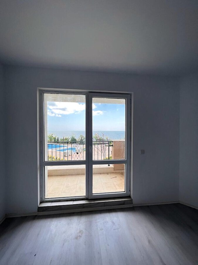 Апартаментът е светъл и функционален, със следното разпределение – входно антре, две стаи, баня с тоалетна, тераса с гледка към басейна, морето и двора. В жилището има подови настилки и качествена дограма, както и врати. Банята е напълно завършена.