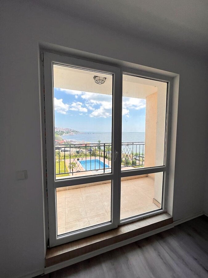Жилището е просторно и функционално, със следното разпределение – входно антре, голяма всекидневна, две спални, баня с тоалетна, отделна тоалетна, тераса с красива гледка към морето и басейна. В апартамента има врати, качествена дограма и подови настилки, а банята и тоалетната са напълно завършени.