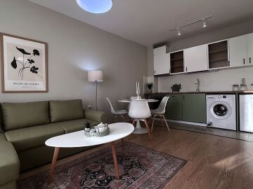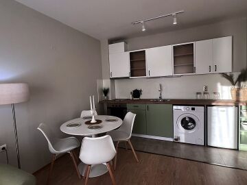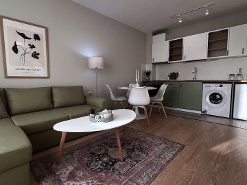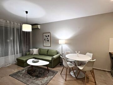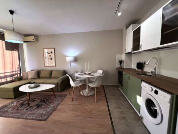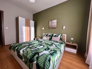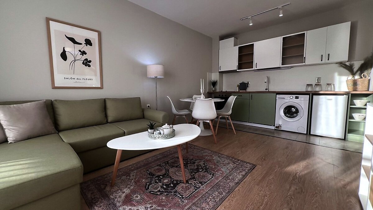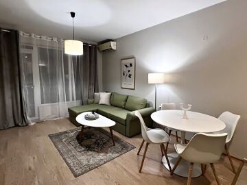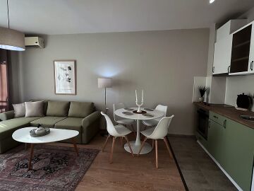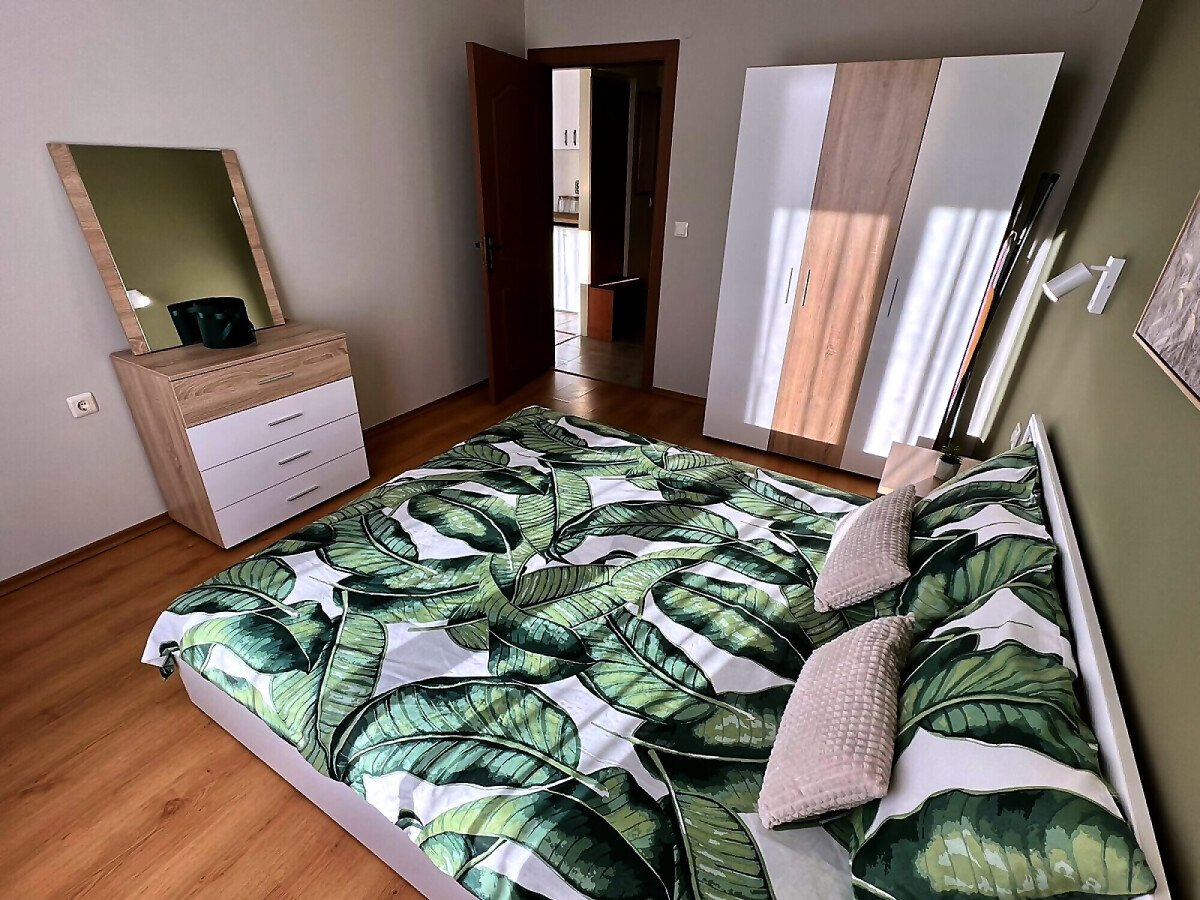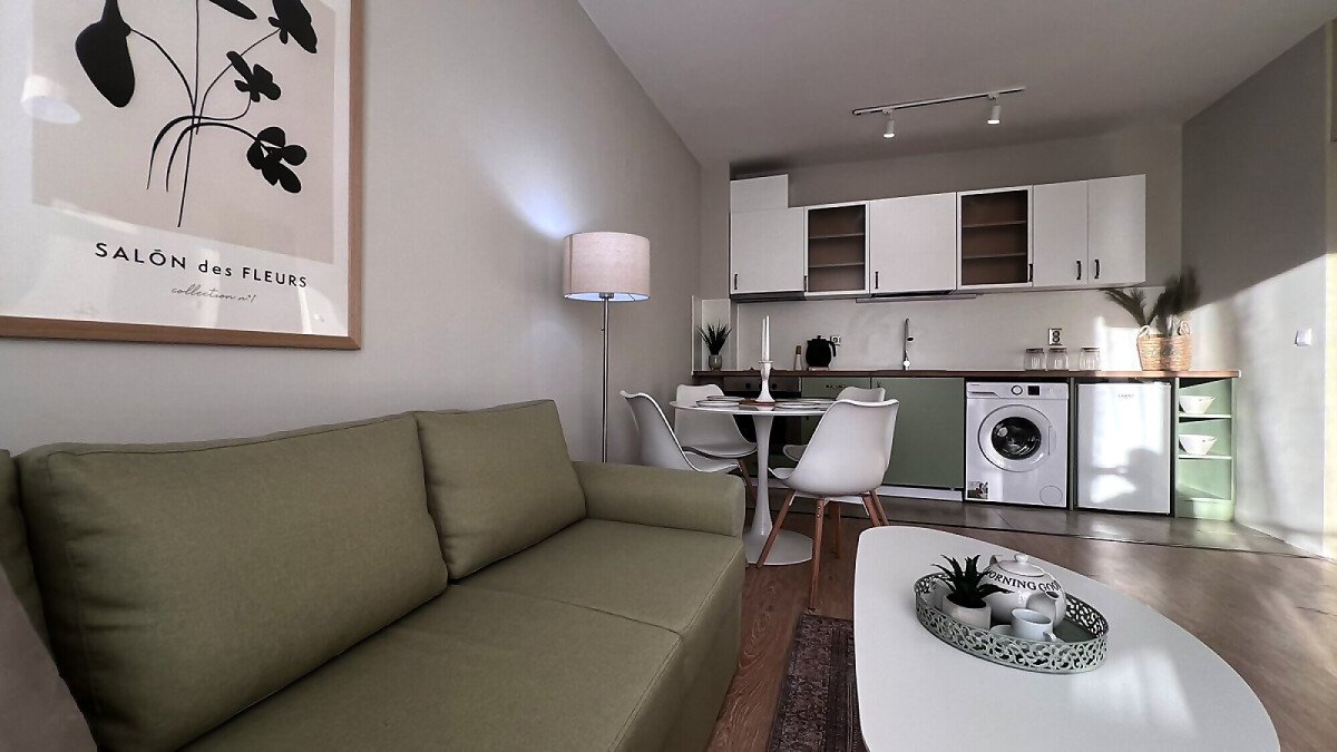 Апартаментът е разположен на трети етаж, като сградата разполага с асансьор и има следното разпределение – входно антре, всекидневна с кухненски бокс, спалня, баня с тоалетна и душ кабина, тераса. Продава се в отлично състояние, обзаведен с нови и стилни мебели, оборудван с качествена домакинска електротехника, готов за живеене или отдаване под наем.