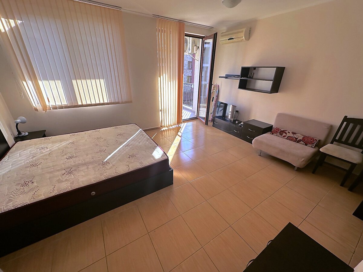Предлагаме за продажба просторно и функционално студио в комплекс „Аполон 7“, разположен между курортното селище Равда и град Несебър, само на 200 метра от морето и пясъчната плажна ивица.