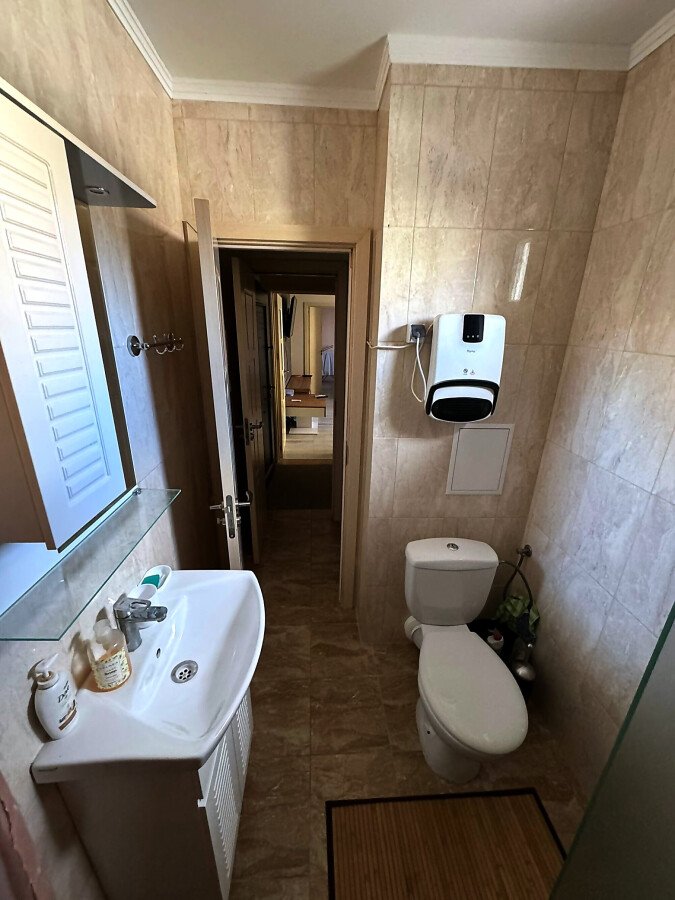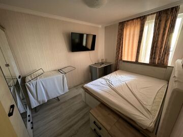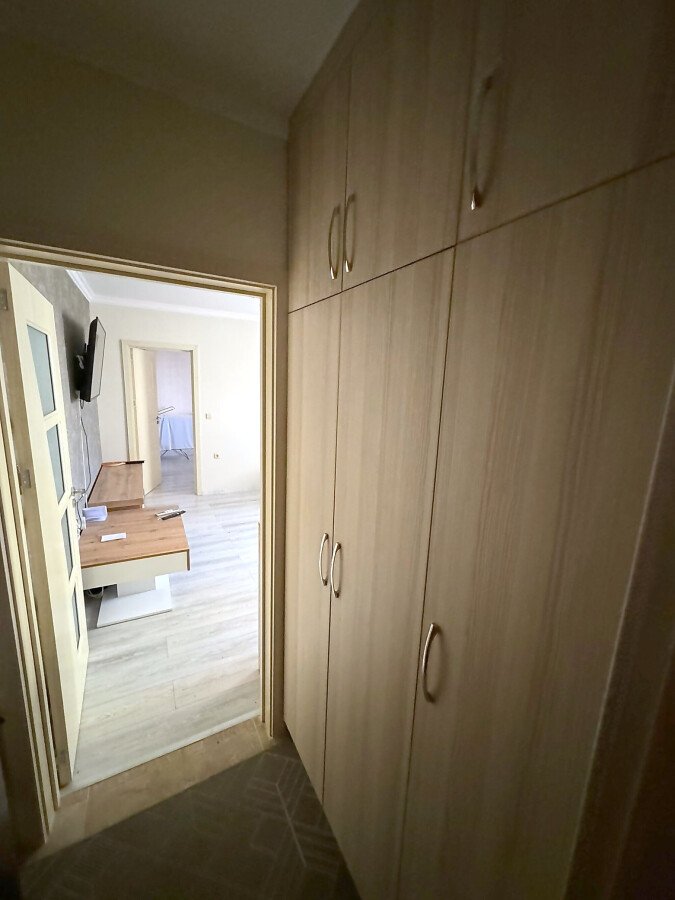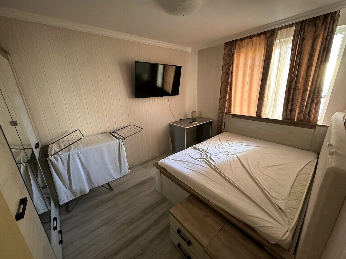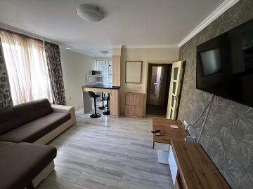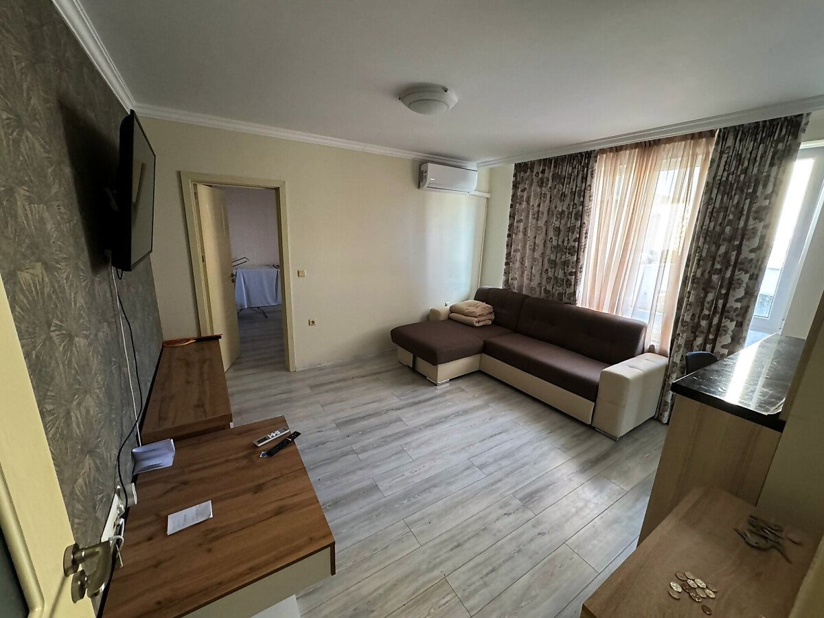 Имотът е разположен на втори жилищен етаж и има следното разпределение – входно антре, всекидневна с обособен кухненски бокс, спалня, баня с тоалетна и душ кабина. Жилището се отдава под наем напълно обзаведено с нови мебели и оборудвано с нова електротехника, готово за нанасяне. И в двете стаи има както климатик, така и телевизор.