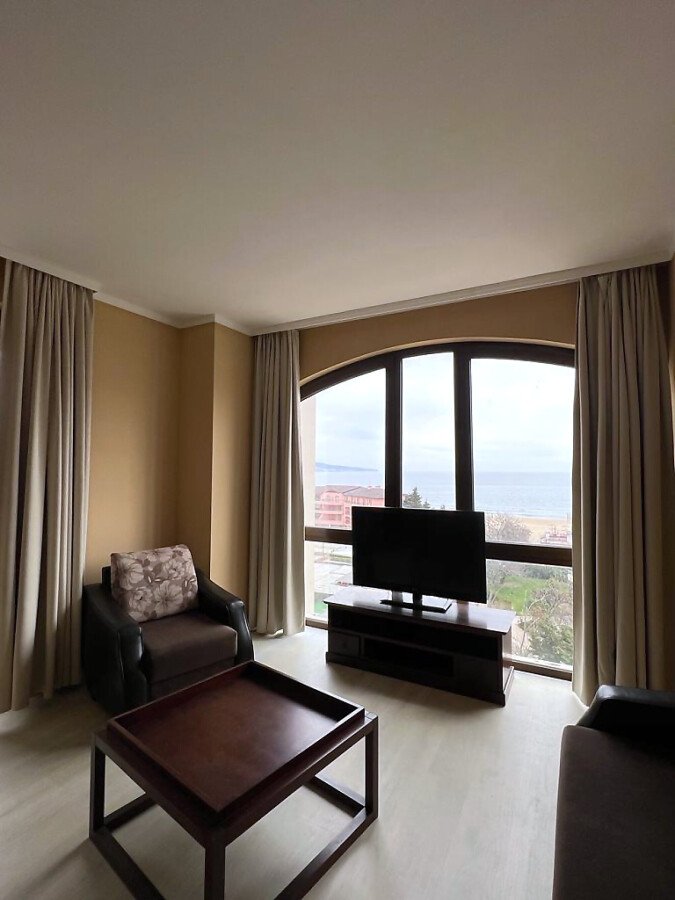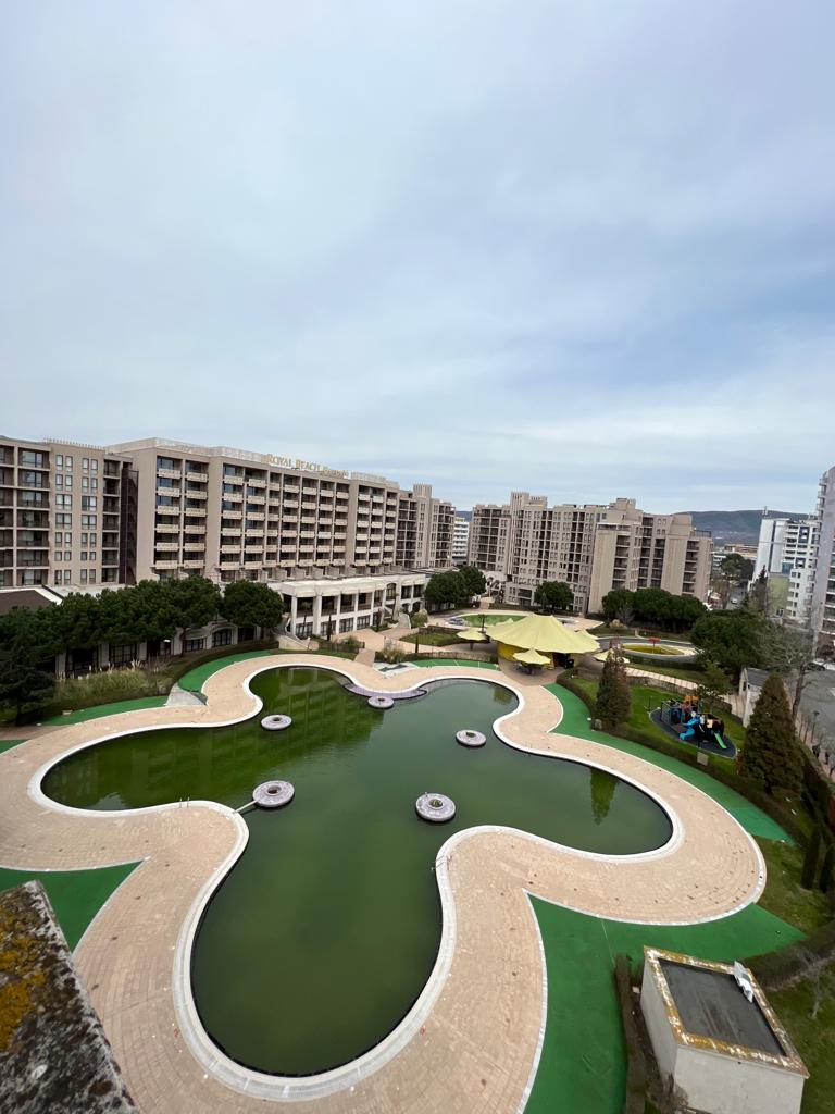Предлагаме за продажба хубав тристаен апартамент с гледка към морето в модерния жилищен комплекс „Роял Бийч Барсело“, разположен само на 50 метра от пясъчната плажна ивица и в непосредствена близост до централната част на популярния курорт Слънчев бряг.