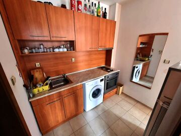 Апартаментът е разположен на четвърти, последен етаж и се състои от всекидневна с кухненски бокс, баня с тоалетна, спалня, тераса с гледка към курорта. Продава се частично обзаведен, кухнята е напълно оборудвана. Това е отлична възможност да го мебелирате според Вашия вкус и предпочитания!