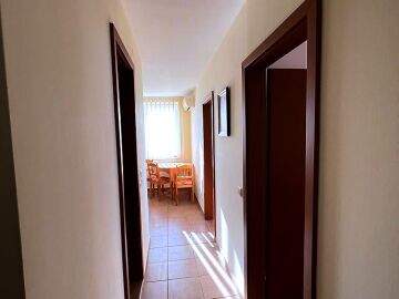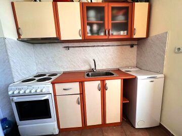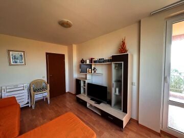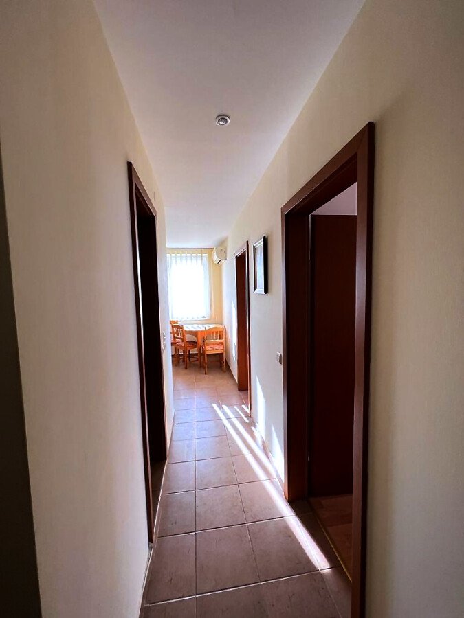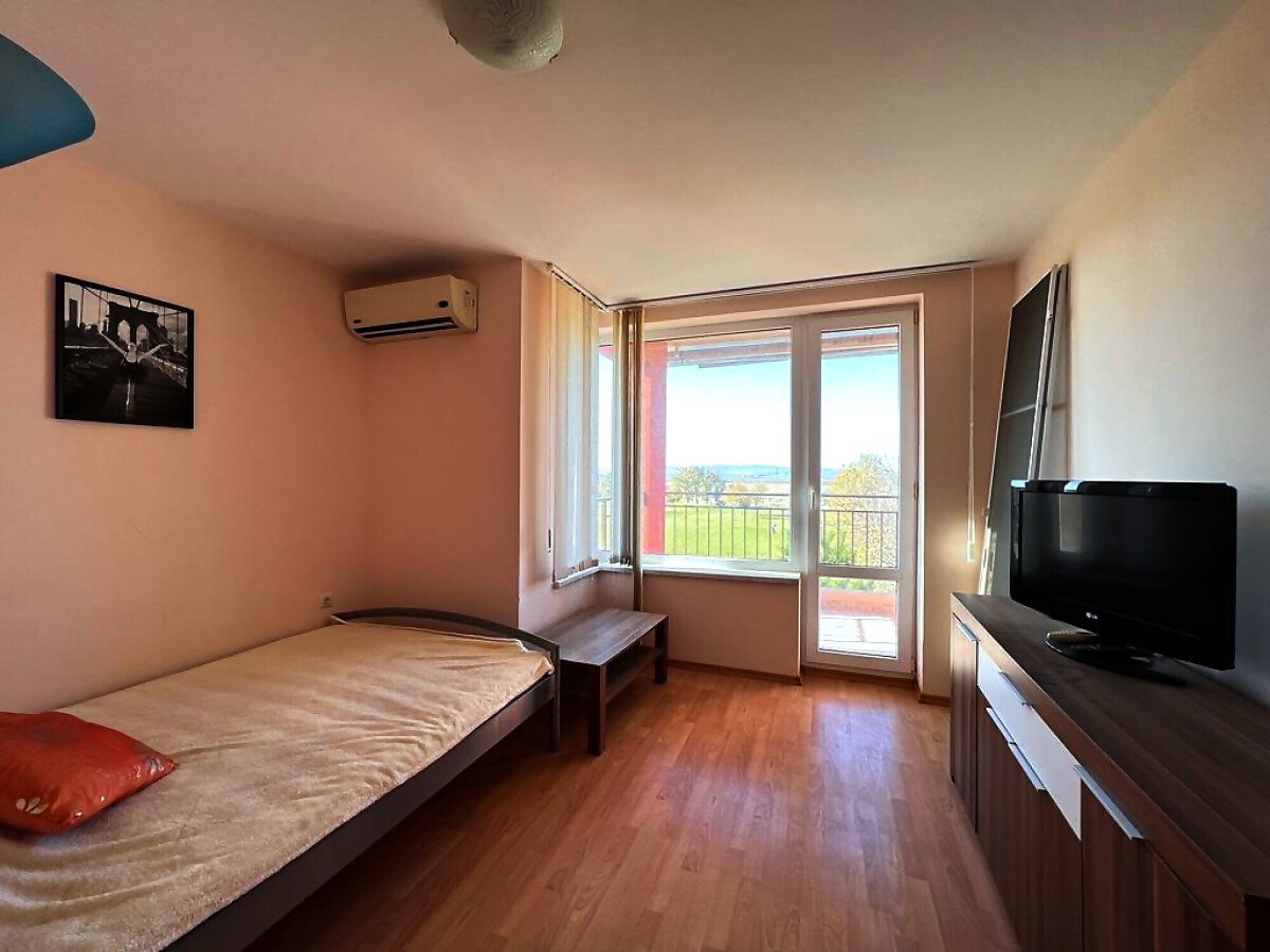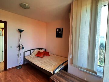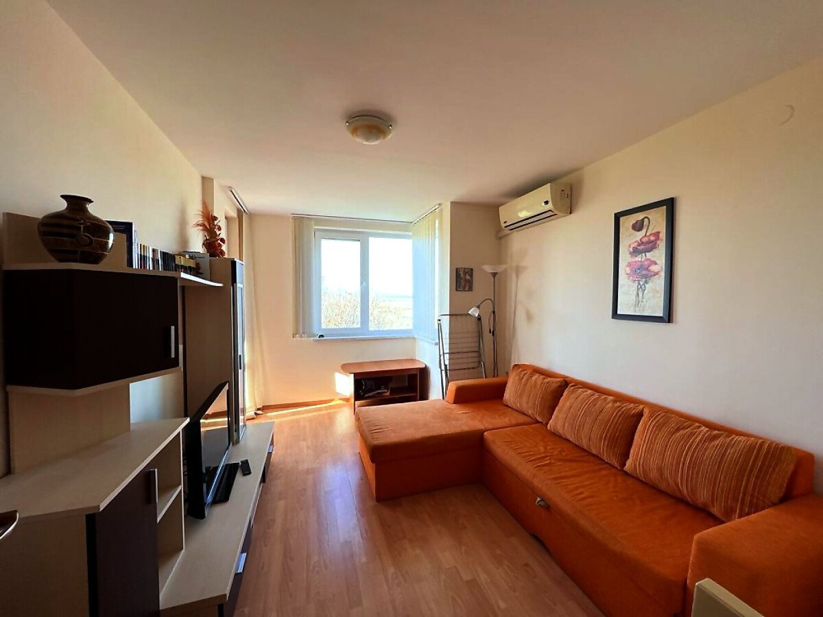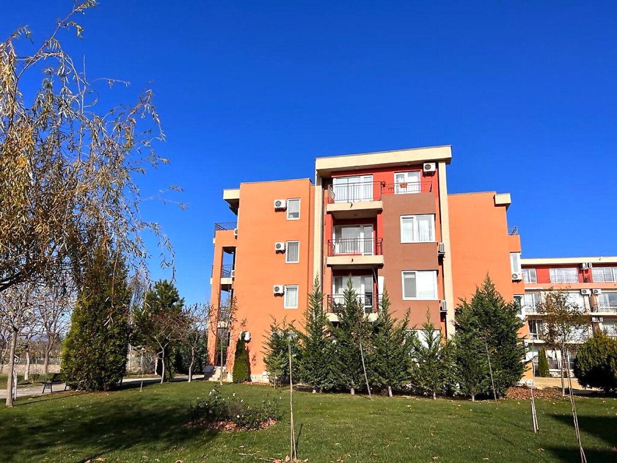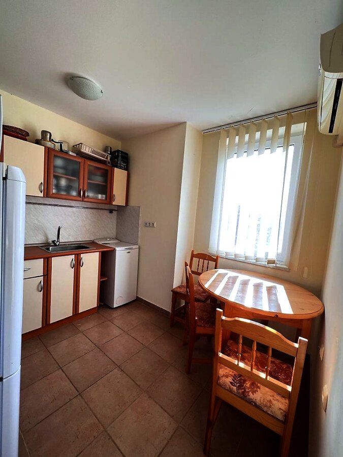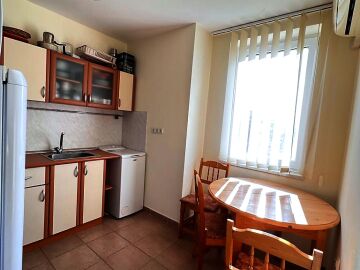 Апартаментът е разположен на трети етаж и се състои от входно антре, всекидневна, отделна кухня с трапезария, спалня, баня с тоалетна и душ кабина, тераса с гледка към озеленената част на комплекса. За продажба напълно оборудван с домакинска електротехника, обзаведен с хубави мебели, готов за живеене.