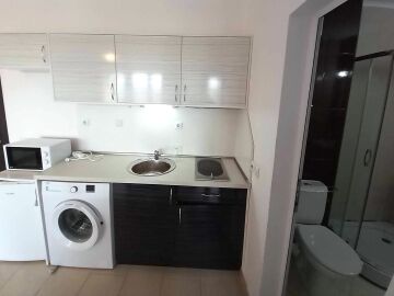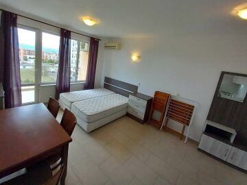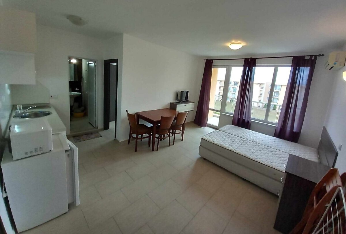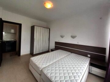 Апартаментът се състои от входно антре, просторна всекидневна с кухненски бокс и зона за хранене, спалня, баня с тоалетна и душ кабина, тераса с изглед към курорта. За продажба с всичко необходимо както за летен отдих, така за постоянно живеене.