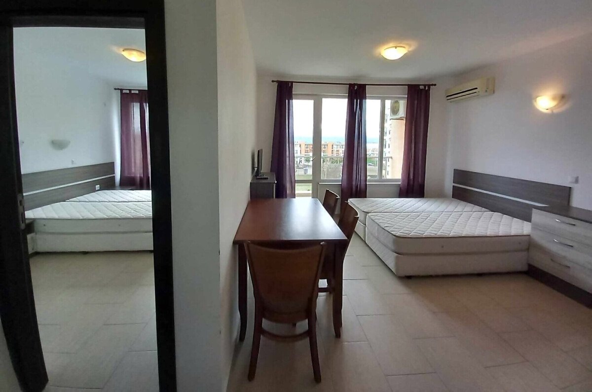 Предлагаме за продажба двустаен апартамент в комплекс „Анна Марина“, разположен в тиха и спокойна част на курорта Свети Влас, само на 200 метра пешеходно разстояние от плажната ивица. Комплексът е от затворен тип и се състои от две сгради, като всяка от тях разполага с асансьор.