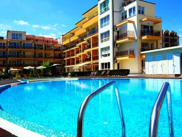 На разположение на собствениците и гостите има външен плувен басейн с детска част, голяма озеленена територия, детска площадка, бар до басейна, целогодишна охрана, паркинг, поддръжка на общите части.