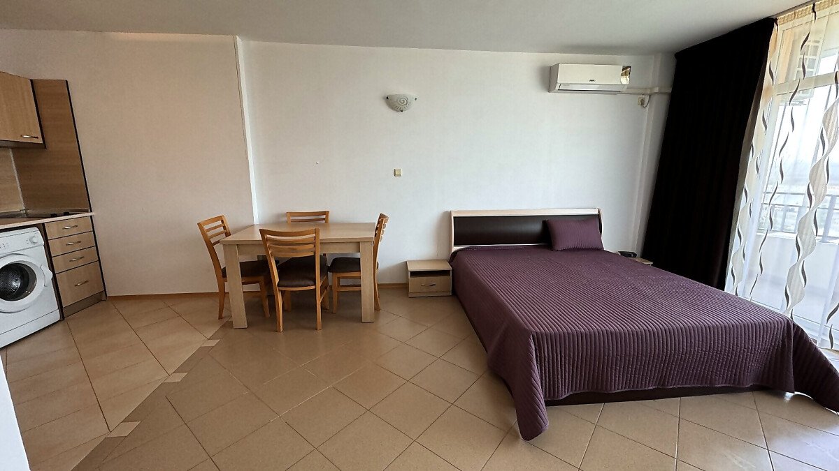 Предлагаме за продажба чудесен двустаен апартамент с гледка към басейна в комплекс „Гранд Камелия“, разположен на 600 метра от плажната ивица, в западната част на курорта Слънчев бряг. В близост има голям супермаркет, автогара, разнообразие от магазини, заведения, летни атракции.