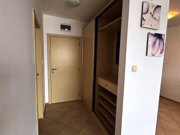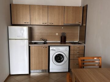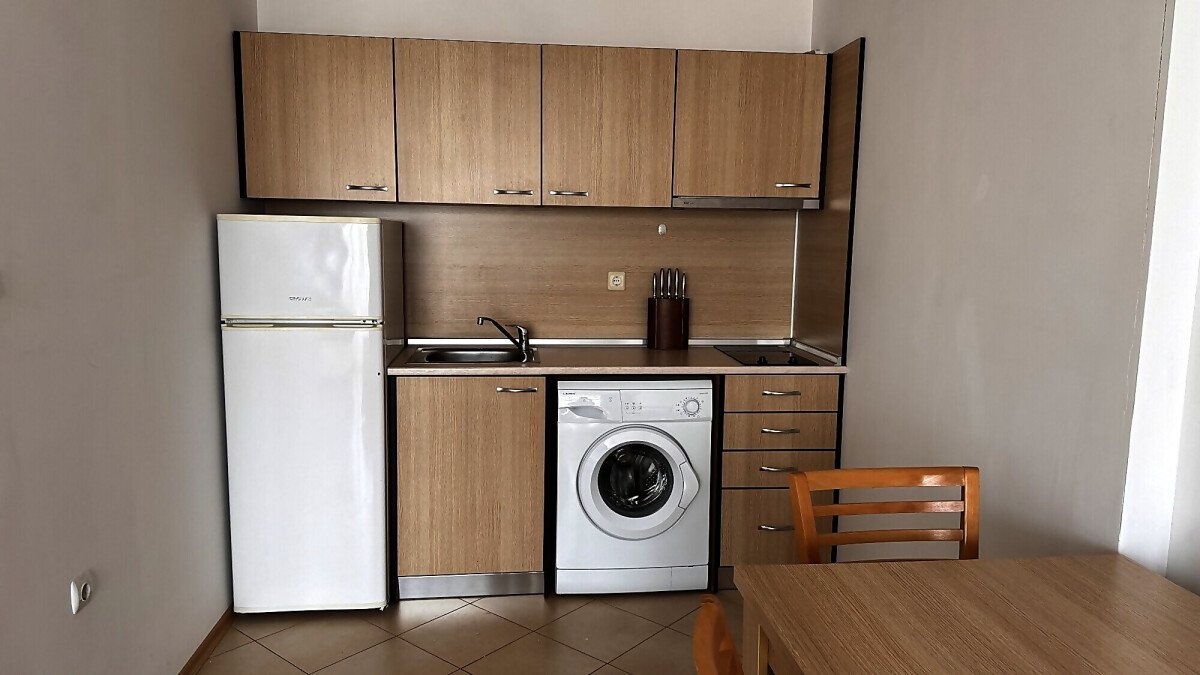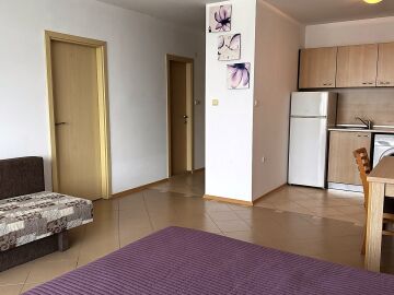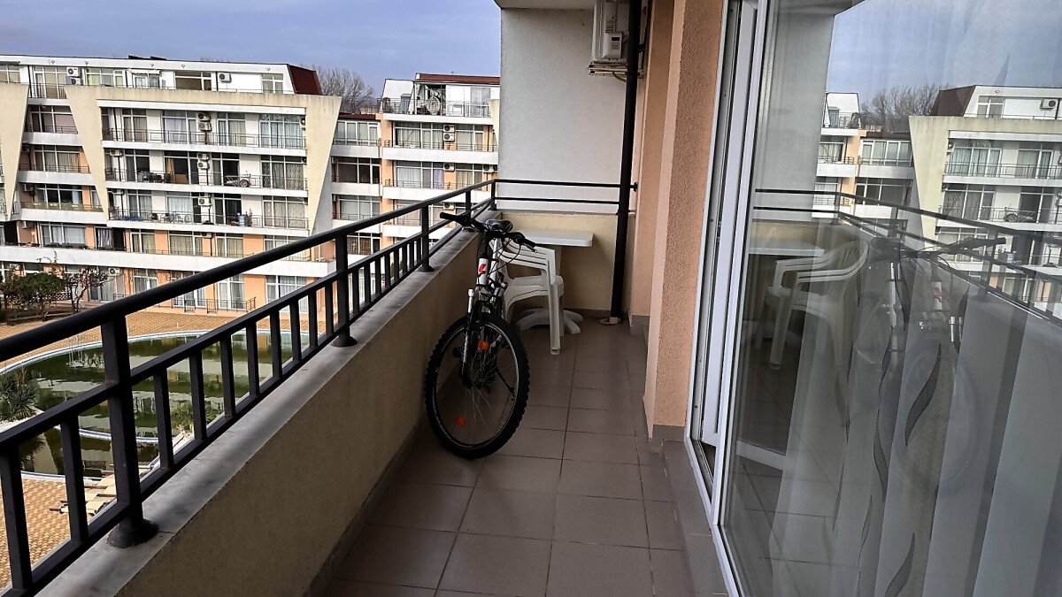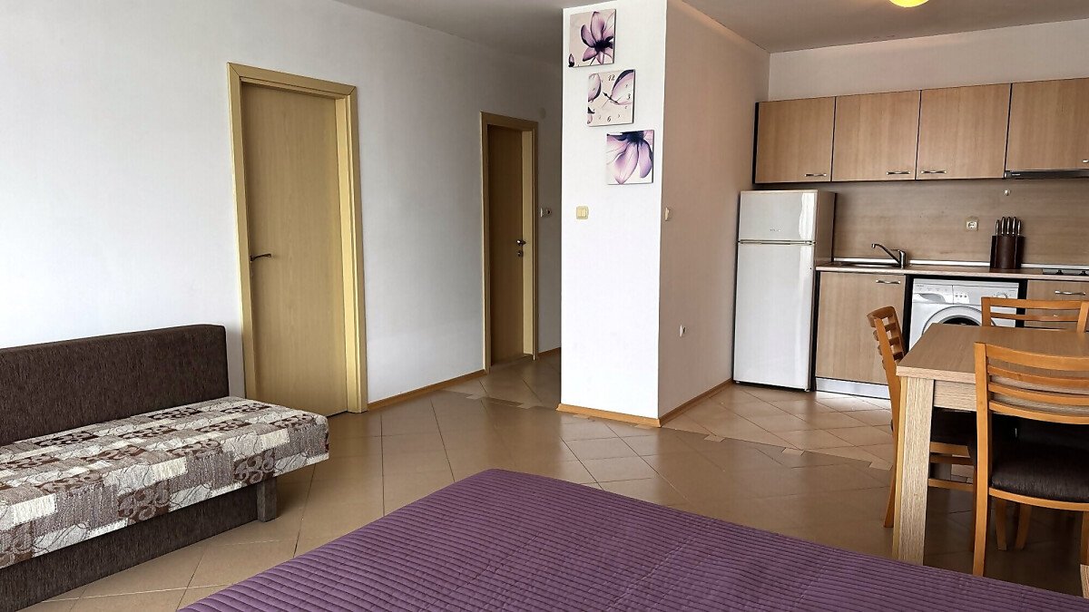 Апартаментът се продава обзаведен и оборудван, и има следното разпределение – входно антре, всекидневна с кухненски бокс и обособена зона за хранене, спалня, баня с тоалетна и душ кабина, тераса с изглед към басейна и озеленената територия на комплекса.