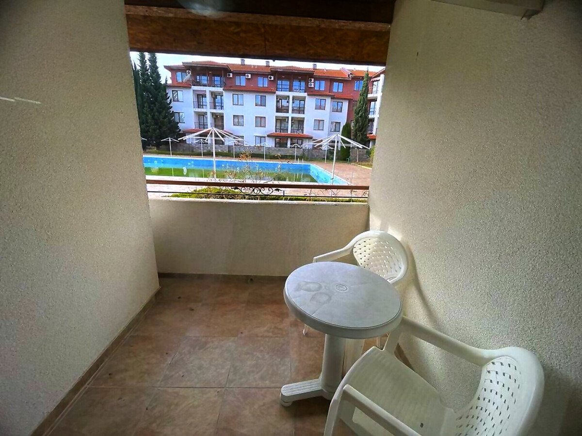 Предлагаме за продажба прекрасен двустаен апартамент с гледка към басейна в комплекс „Аполон 3“, част от верига комплекси „Аполон“, построени в модерен български стил, само на 300 метра пешеходно разстояние от плажната ивица в курортното селище Равда.