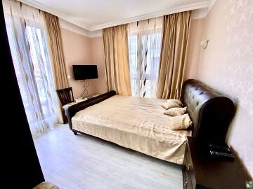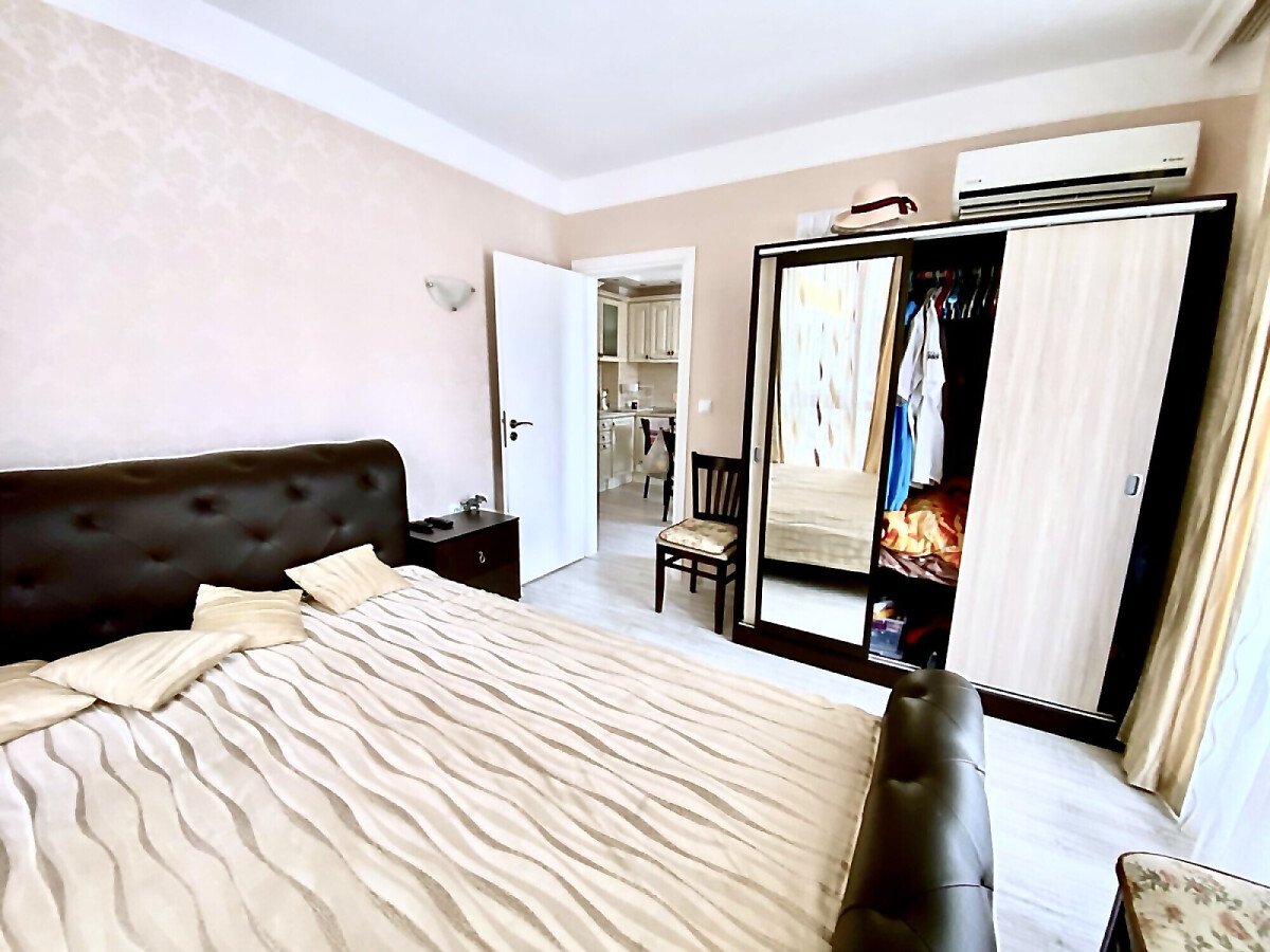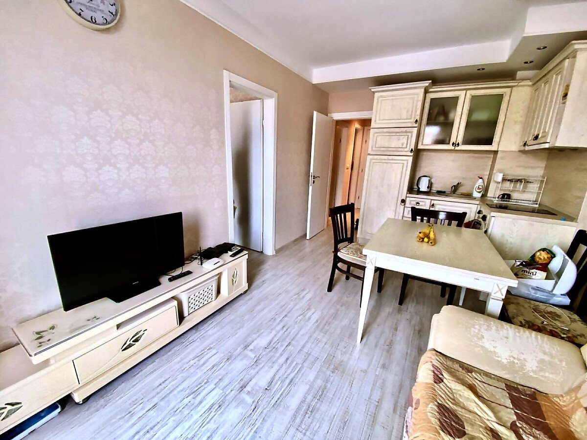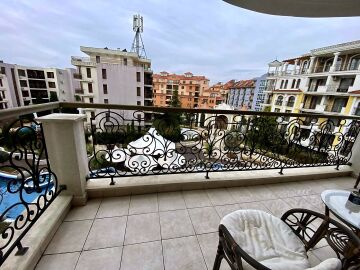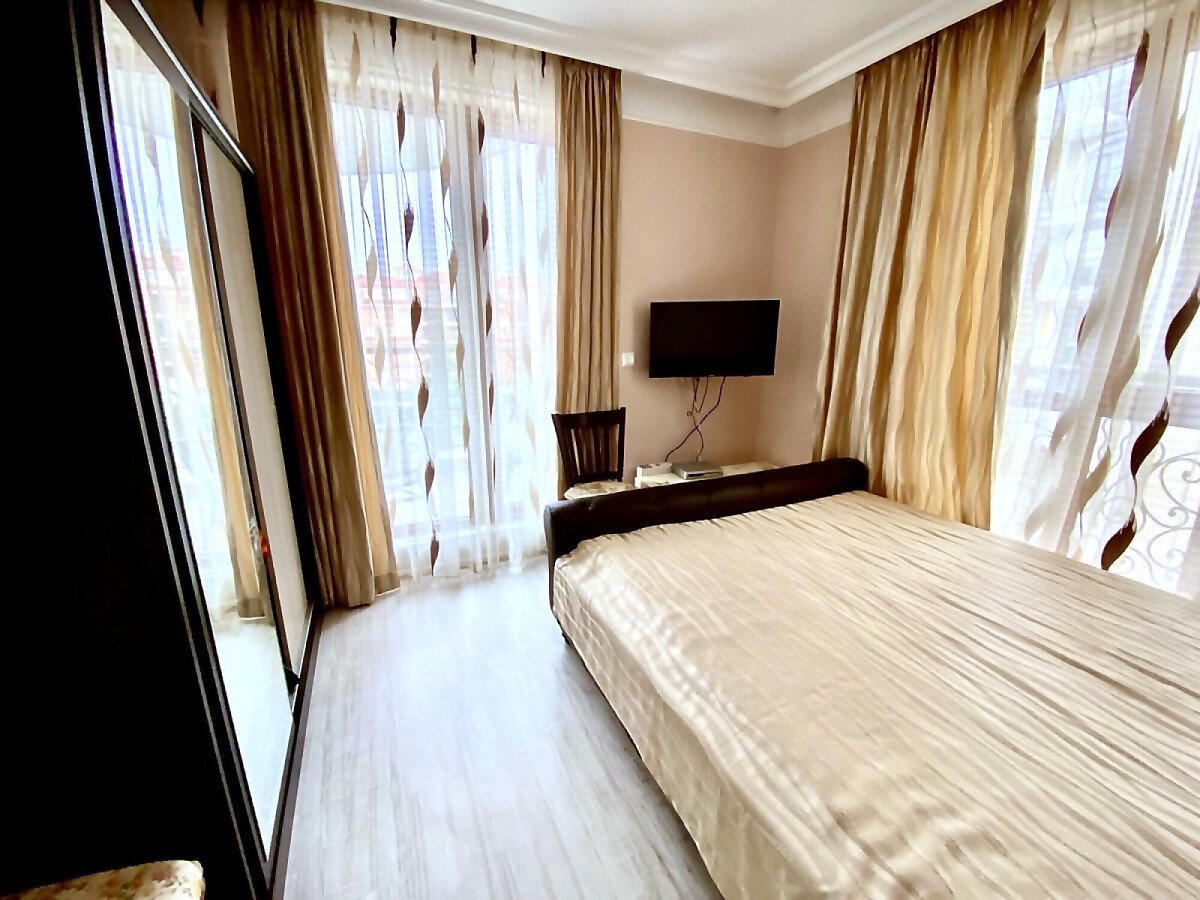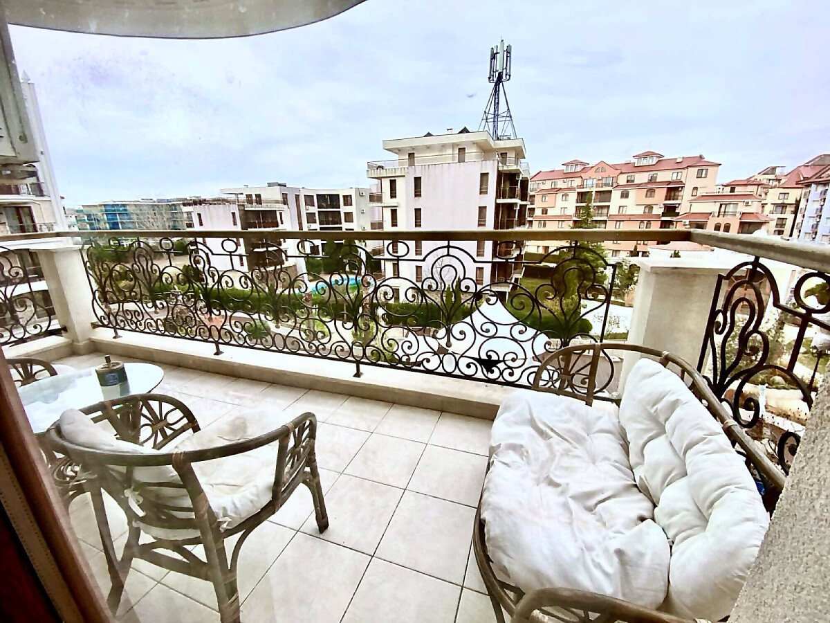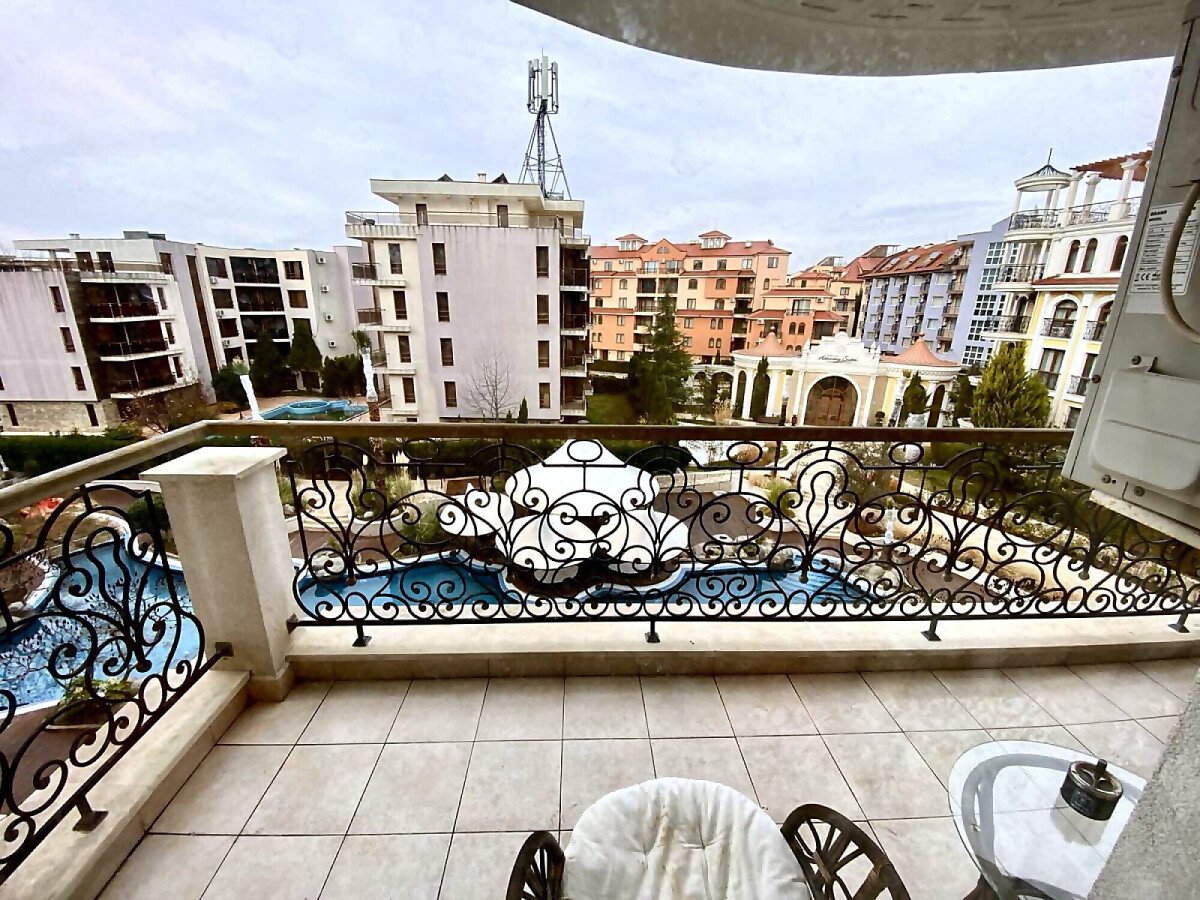 Предлагаме за продажба тристаен апартамент с гледка към басейна в луксозния жилищен комплекс „Хармони Суитс Монте Карло“, разположен в тихата част на курорта Слънчев бряг, на 300 метра от морето и плажната ивица. Комплексът се състои от 3 сгради, свързани помежду си с чудесна озеленена територия.