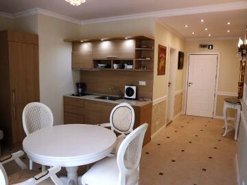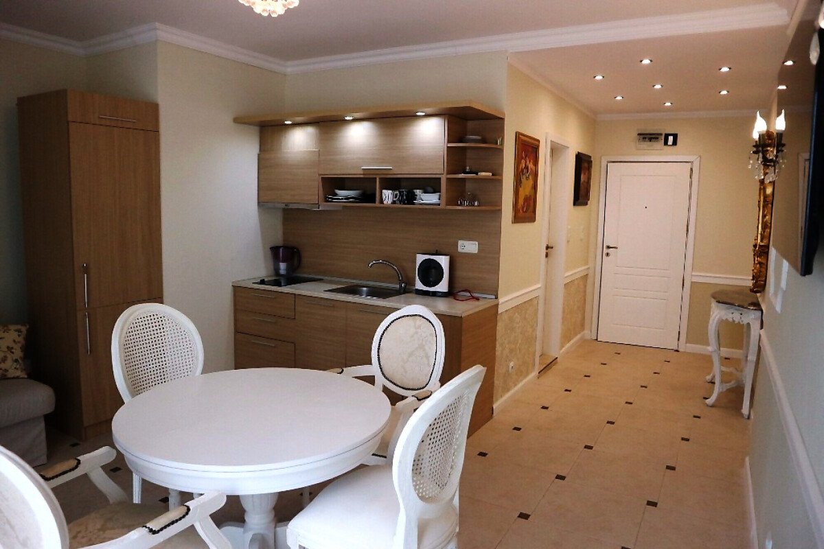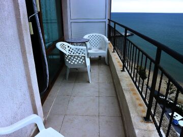 Апартаментът е разположен на последен етаж и се състои от входно антре, всекидневна с обособена зона за хранене и кухня, спалня, баня с тоалетна и душ кабина, тераса с невероятна панорамна гледка към морето и басейна. За продажба стилно и луксозно обзаведен, качествено оборудван, готов за живеене или отдаване под наем.