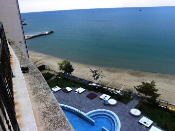 Предлагаме за продажба чудесен двустаен апартамент с уникална морска панорама в комплекс „Гранд Хотел Свети Влас“, разположен на първа брегова линия в елитния курорт Свети Влас, само на метри пешеходно разстояние от плажната ивица.