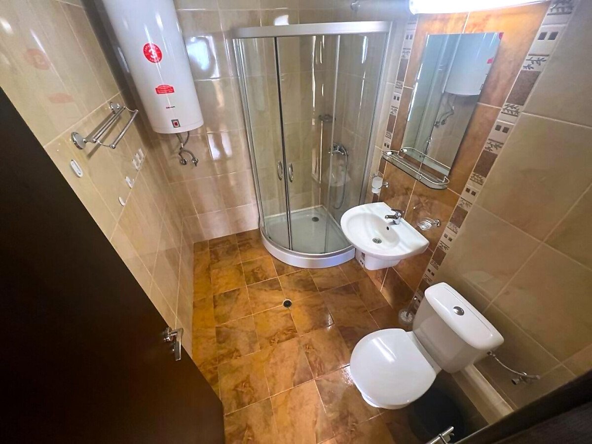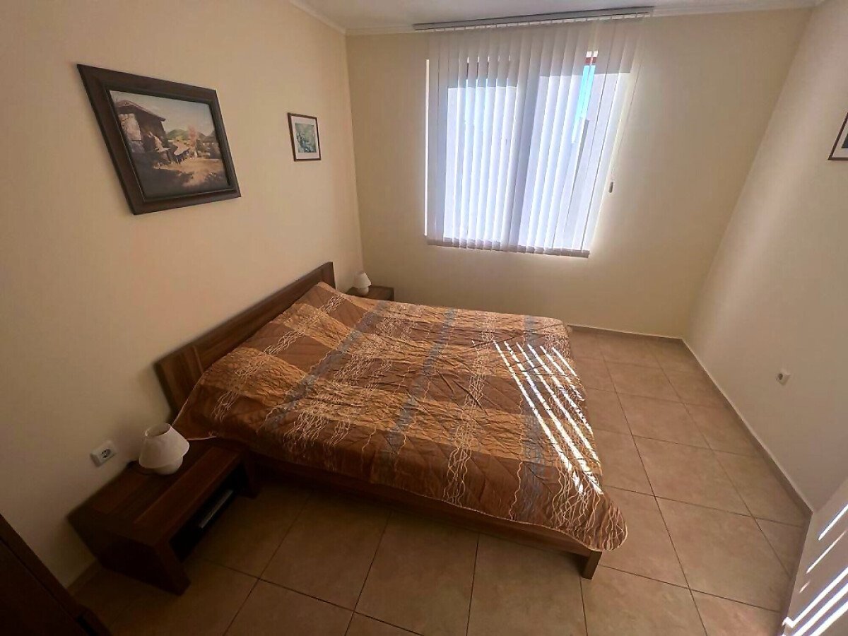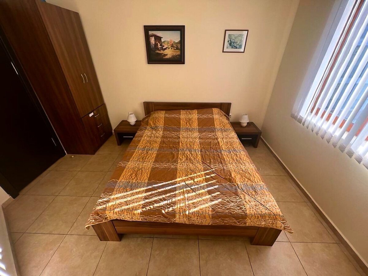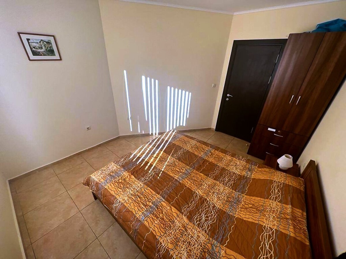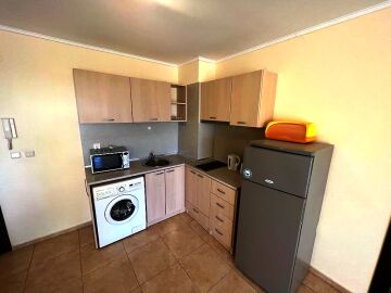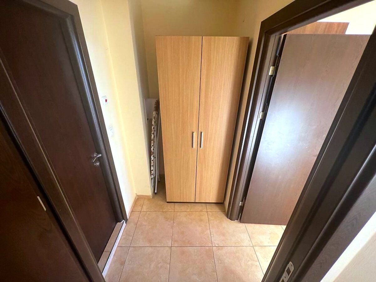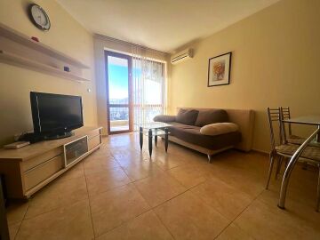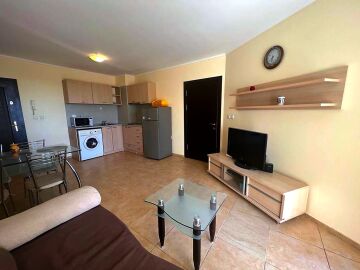 Апартаментът е разположен на трети етаж и се състои от всекидневна с кухненски бокс и обособена зона за хранене, баня с тоалетна и душ кабина, спалня, малка тераса с красив изглед към басейна. За продажба в отлично състояние, напълно обзаведен с качествени мебели, оборудван с необходимата домакинска електротехника, готов за нанасяне или отдаване под наем.