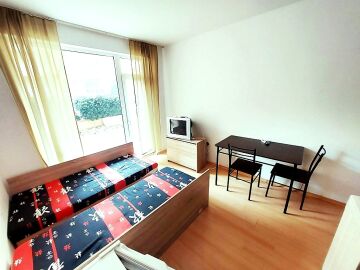 Предлагаме за продажба много изгодно студио в комплекс „Съни Дей 6“, намиращ се на 3 км разстояние от курорта Слънчев бряг, на тихо и уединено място. Той е част от веригата комплекси „Съни Дей“ и разполага с многобройни удобства. Сред тях са открит плувен басейн с детска секция, богато озеленена територия, зони за отдих и слънчеви бани, детска площадка, денонощна охрана и видеонаблюдение, паркинг и поддръжка. За любителите на спорта има тенис корт, футболно игрище, спортни площадки.
