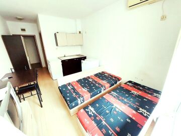 Студиото е разположено на партерен етаж и се продава с необходимото обзавеждане, както и домакинска електротехника. Състои се от входно антре, всекидневна с малък кухненски бокс, спалня и кът за хранене, баня с тоалетна, самостоятелна веранда. В имота има монтиран климатик.