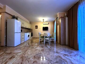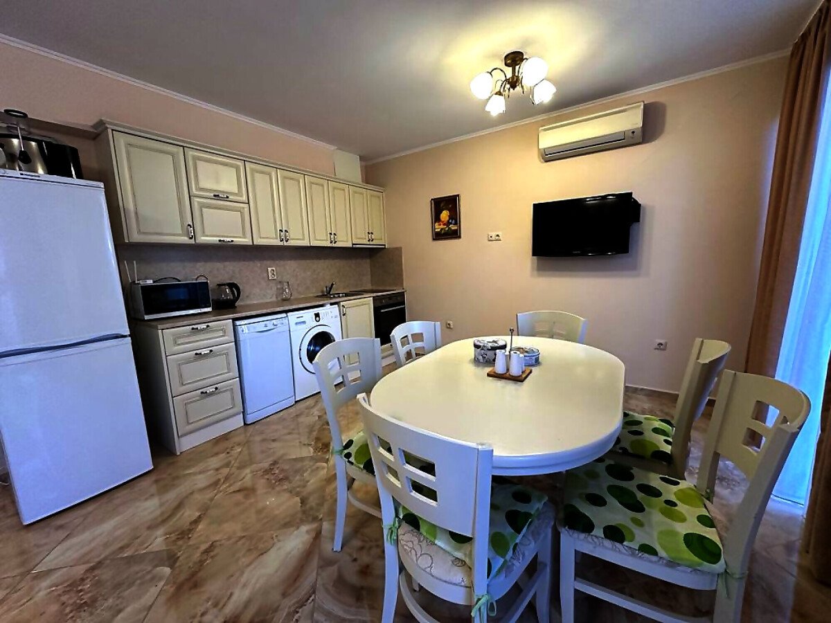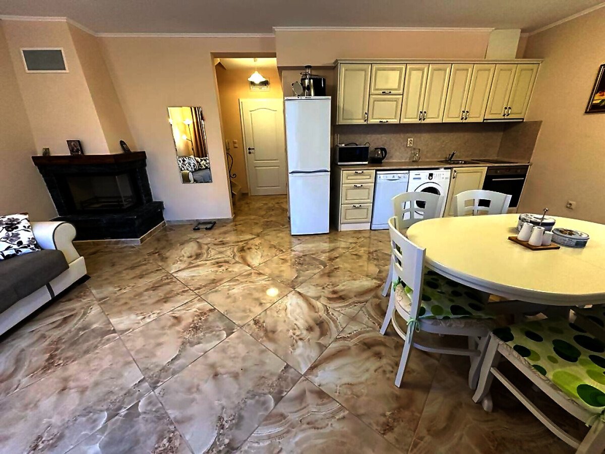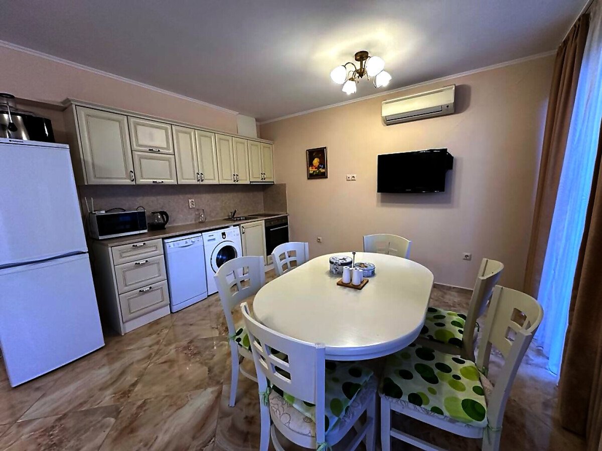 Апартаментът е стилно обзаведен и качествено оборудван, в идеално състояние, готов за постоянно живеене или летен отдих. Имотът има следното разпределение:
