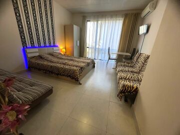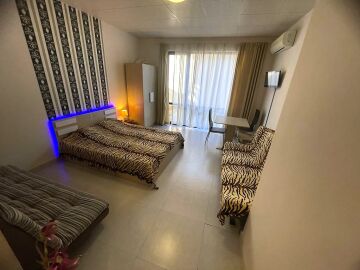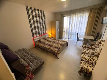 Предлагаме за продажба чудесно студио в хубавия жилищен комплекс „Тарсис“, разположен в тиха и спокойна част на курорта Слънчев бряг, близо до озеленен парк и само на 500 метра от плажната ивица и морето. На пешеходно разстояние има цялата необходима инфраструктура – разнообразие от магазини, ресторанти, кафенета, летни атракции, удобни автобусни спирки.