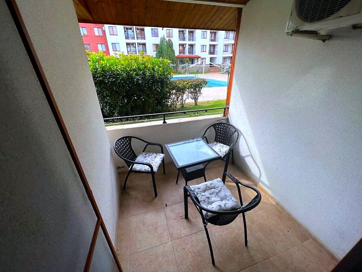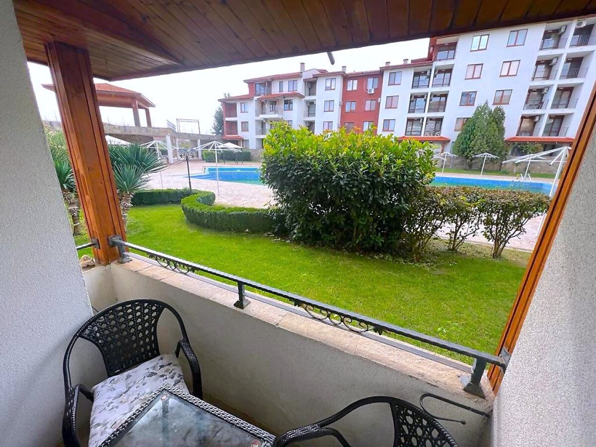 Предлагаме за продажба чудесен тристаен апартамент с две тераси с гледка към басейна в комплекс „Аполон 6“, разположен на 200 метра от плажната ивица и морето, на спокойно и тихо място между град Несебър и курортното селище Равда.