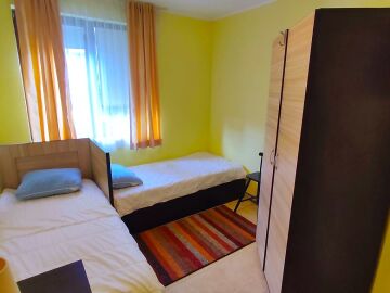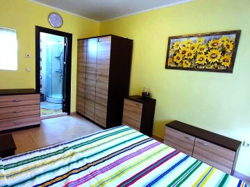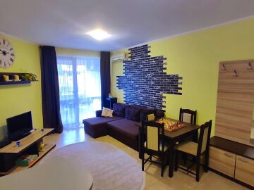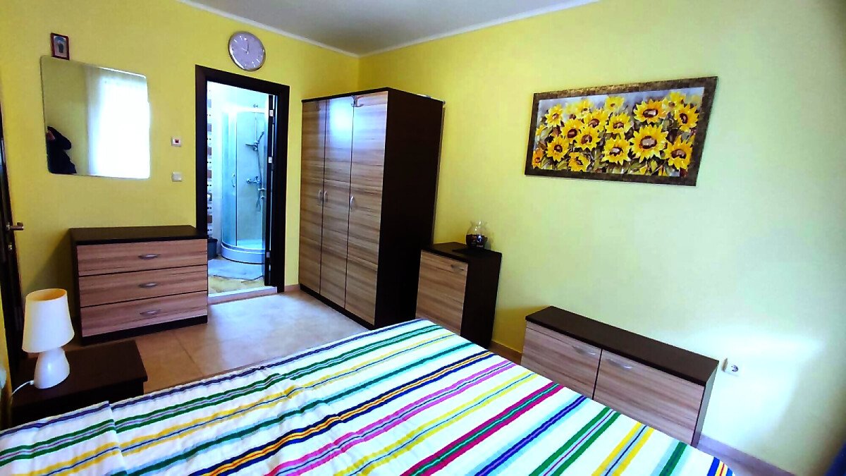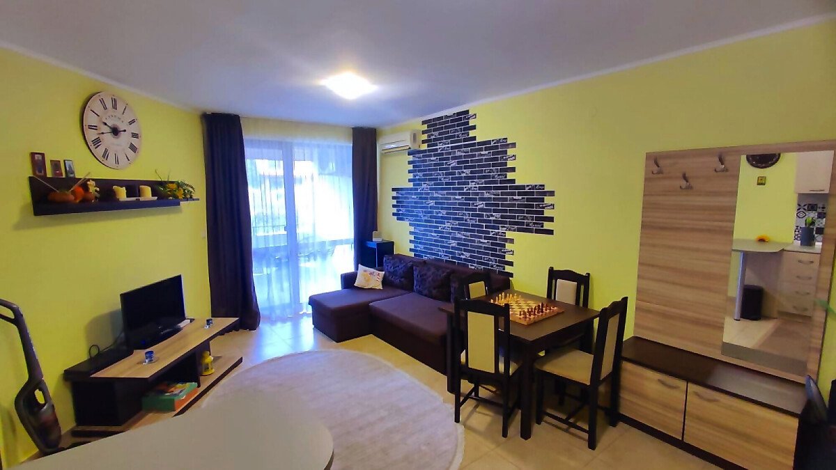 Местоположението е отлично – в район с удобни комуникации и развита инфраструктура, в непосредствена близост до супермаркет, заведения, разнообразие от магазини, аптека, летни атракции.