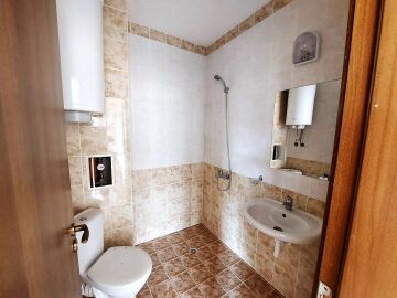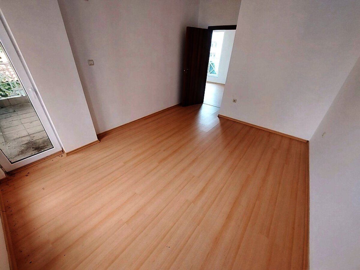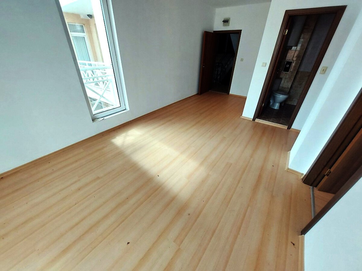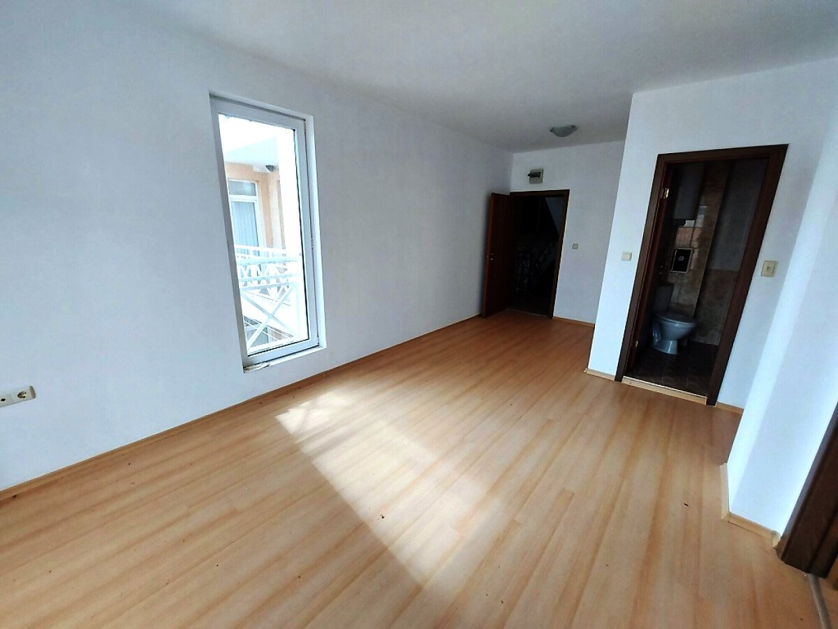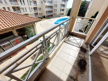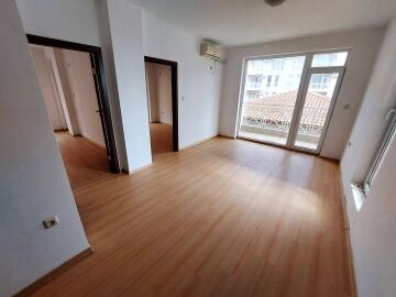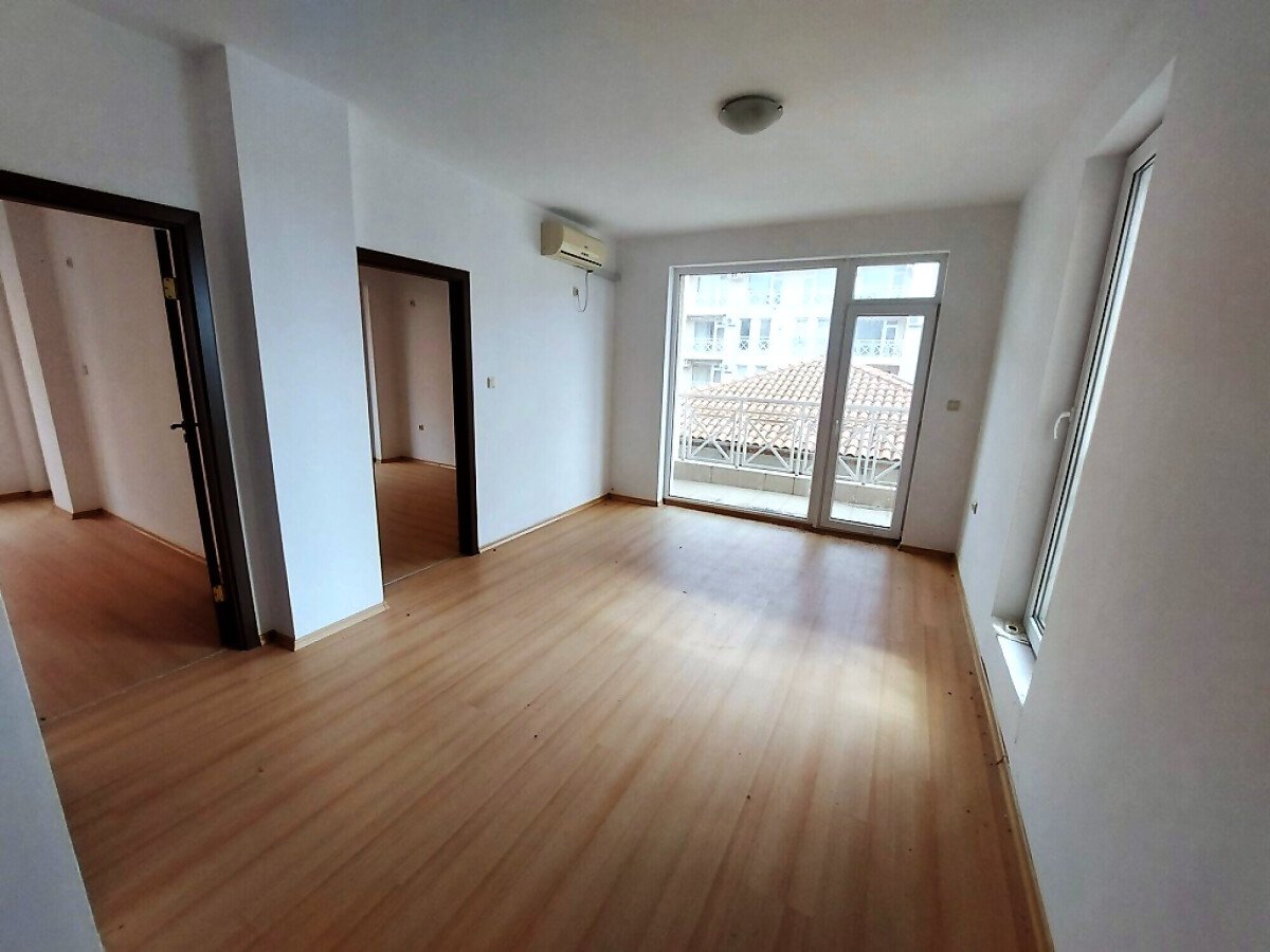 Ние Ви предлагаме да станете собственик на чудесен тристаен апартамент в този комплекс. Жилището се продава необзаведено, което е отлична възможност да го мебелирате и оборудвате според Вашите предпочитания и стил. Разпределението е следното – голяма всекидневна, две спални, баня с тоалетна, тераса с красива гледка към басейна и озеленената част. Банята е напълно завършена и функционална, а в апартамента има монтирани два климатика, сложени са подови настилки и дограма.