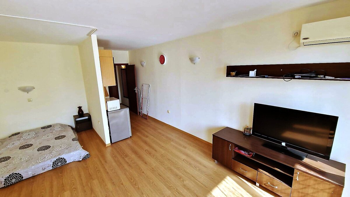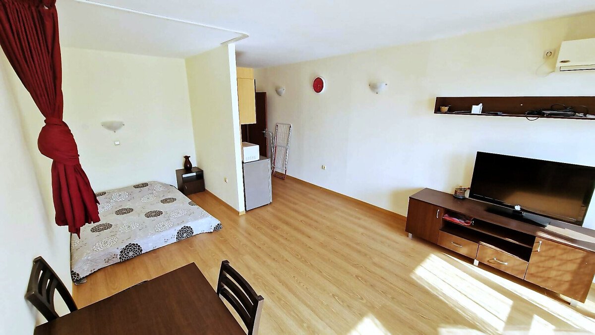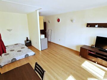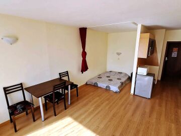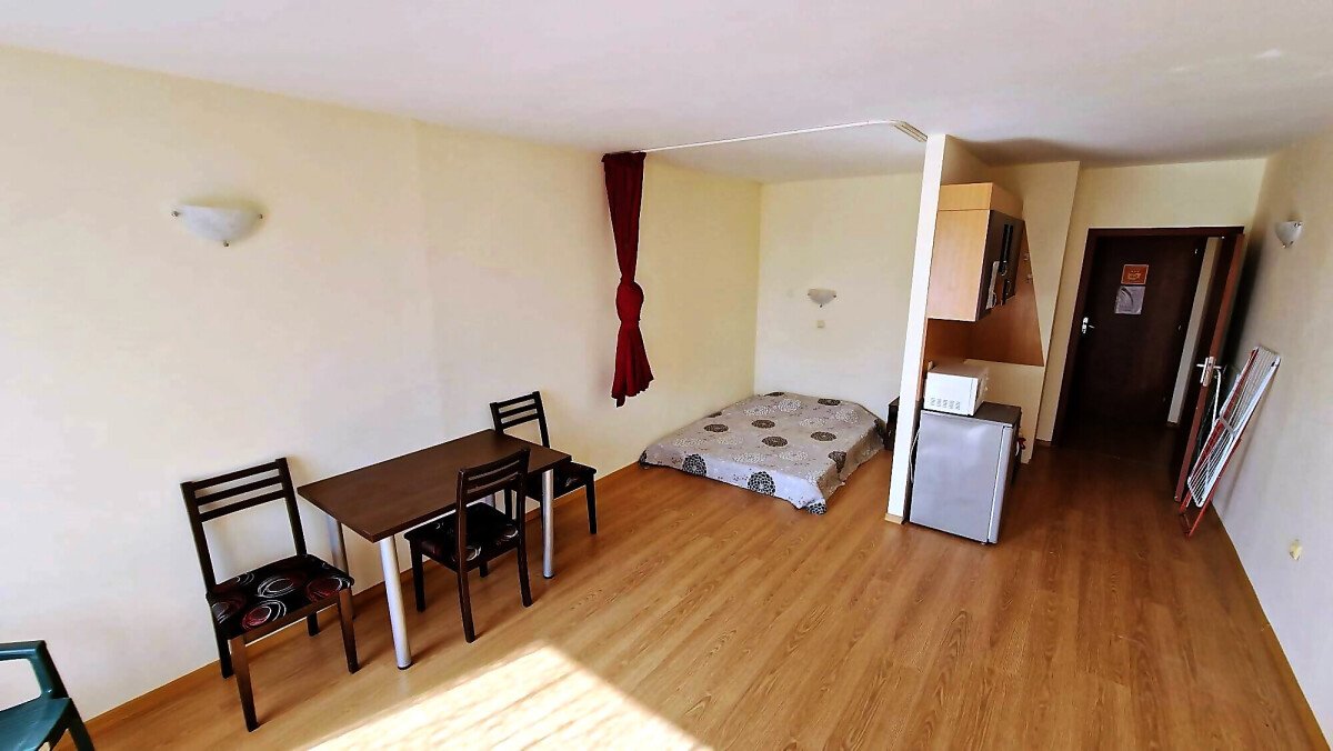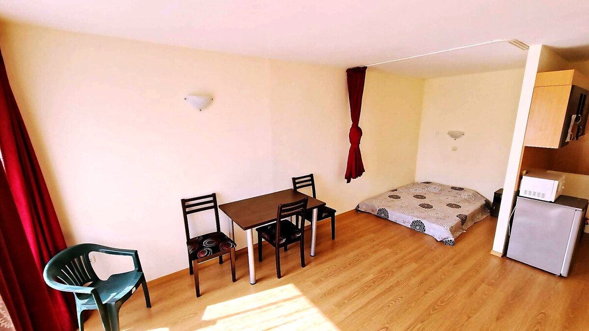 Студиото е разположено на партерен етаж, напълно обзаведено и оборудвано, със следното разпределение – входно антре с малък кухненски бокс, всекидневна с обособена спалня и кът за хранене, самостоятелна веранда с гледка към вътрешната озеленена територия.