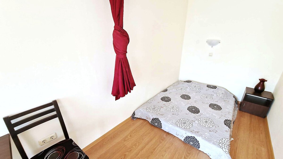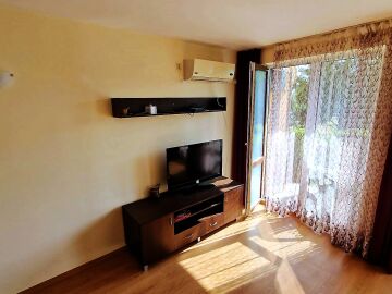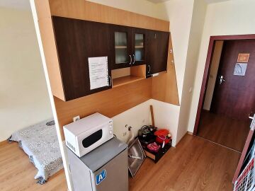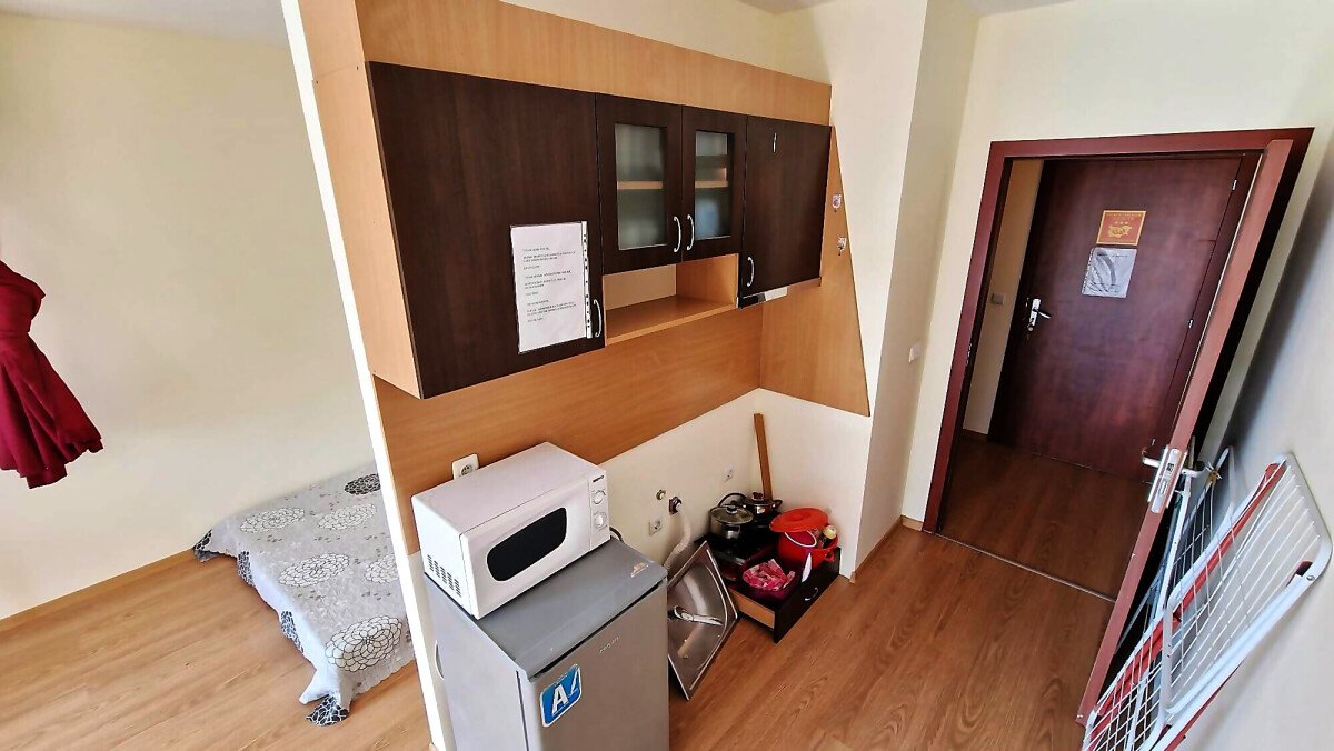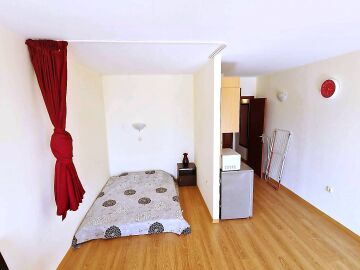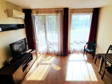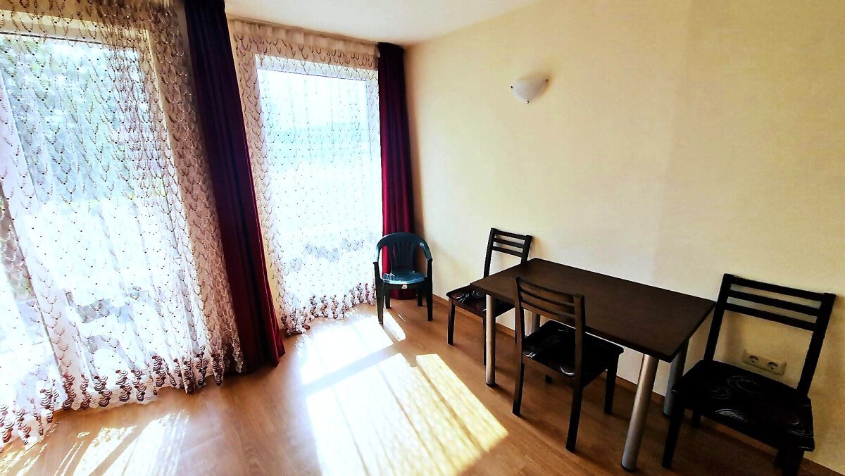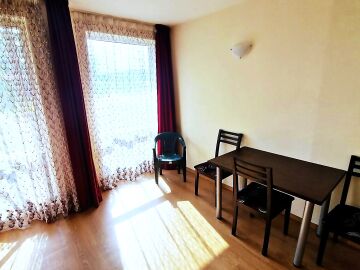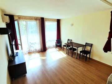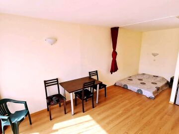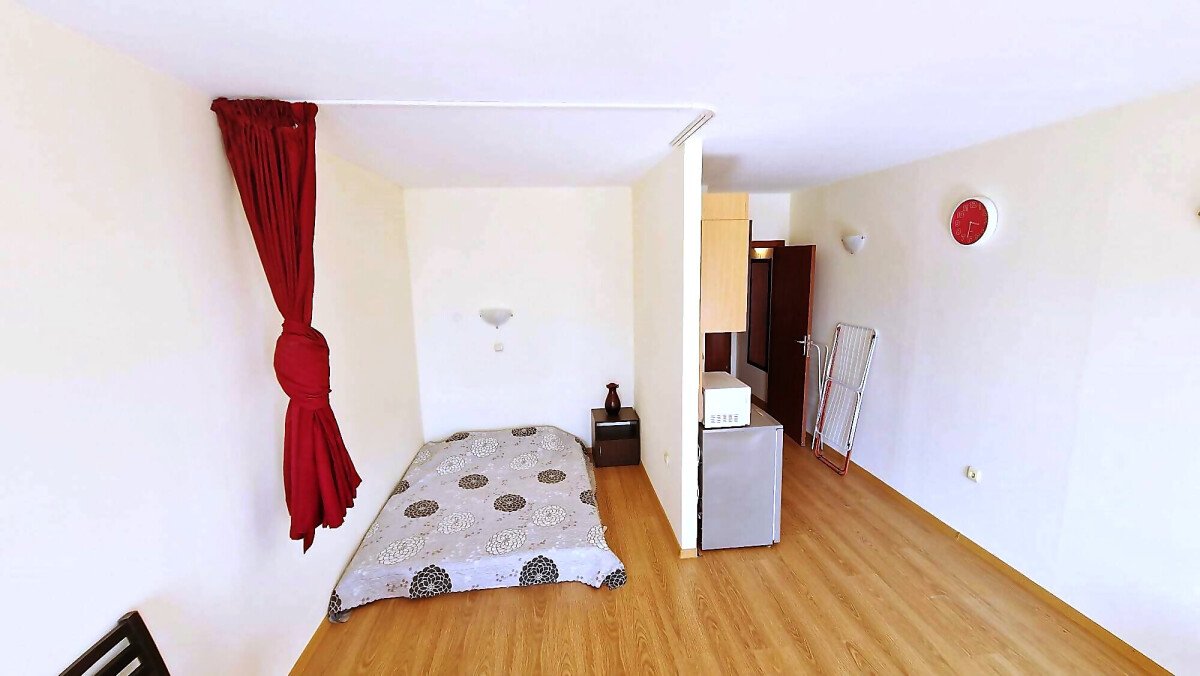 Студиото е разположено на партерен етаж, напълно обзаведено и оборудвано, със следното разпределение – входно антре с малък кухненски бокс, всекидневна с обособена спалня и кът за хранене, самостоятелна веранда с гледка към вътрешната озеленена територия.