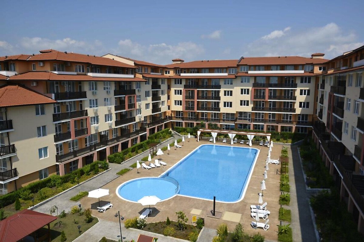 Комплексът е отлично поддържан, с огромна територия от 19 000 кв.м. и следните удобства – открит плувен басейн с детска част, озеленена градина, зони за релакс и слънчеви бани, тенис на корт, футболно игрище, фитнес, барбекю, паркинг, детска площадка, целогодишна поддръжка.