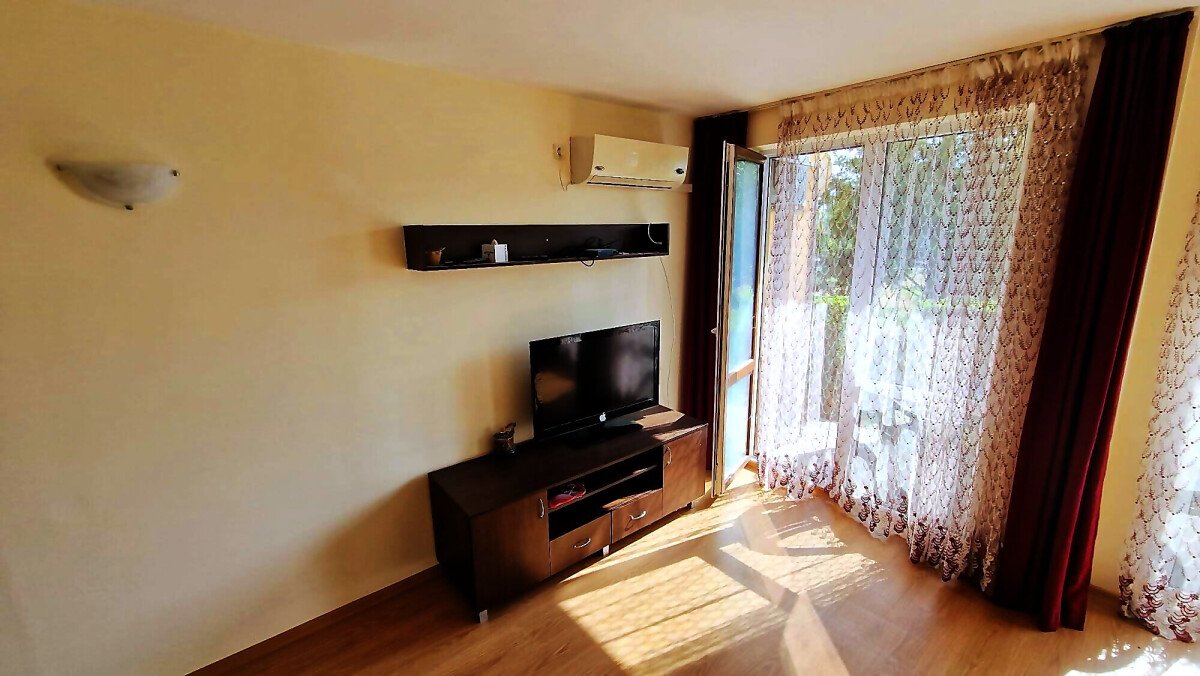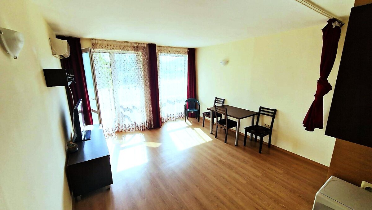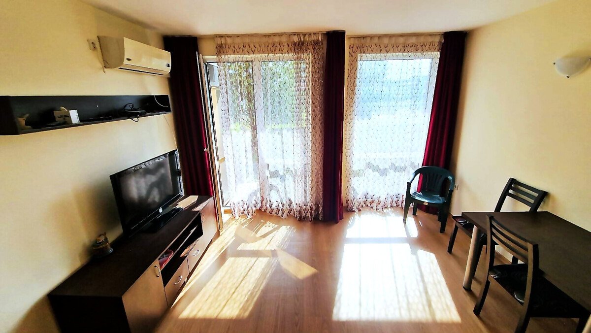 Предлагаме за продажба студио с гледка към двора в комплекс „Шато Ахелой“, разположен на 400 метра от плажната ивица и морето, на тихо и спокойно място, но само на 10 минути пешеходно разстояние от централната част на град Ахелой.
