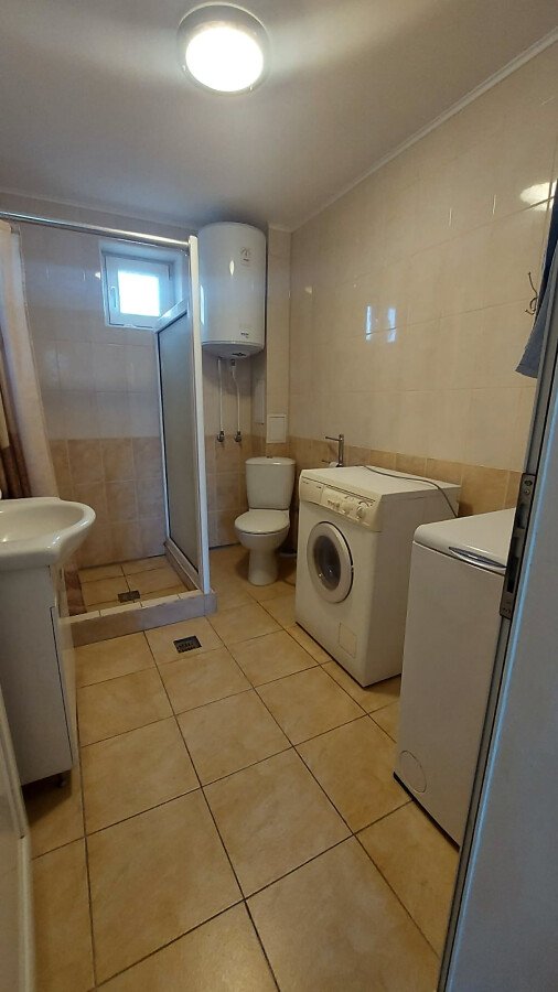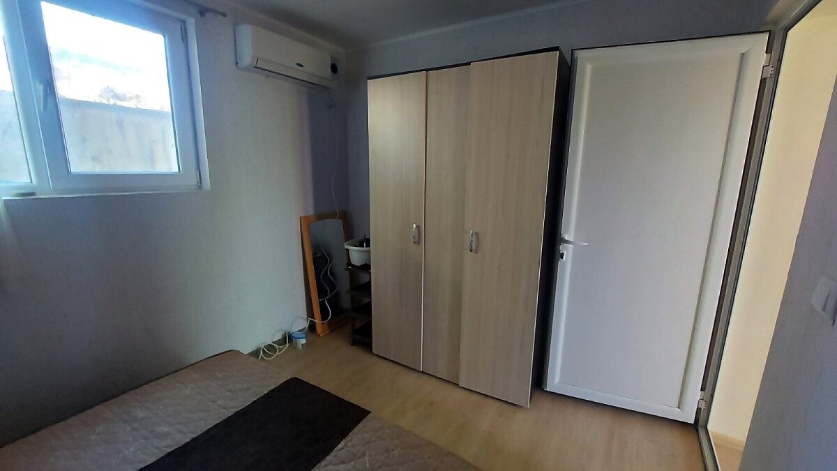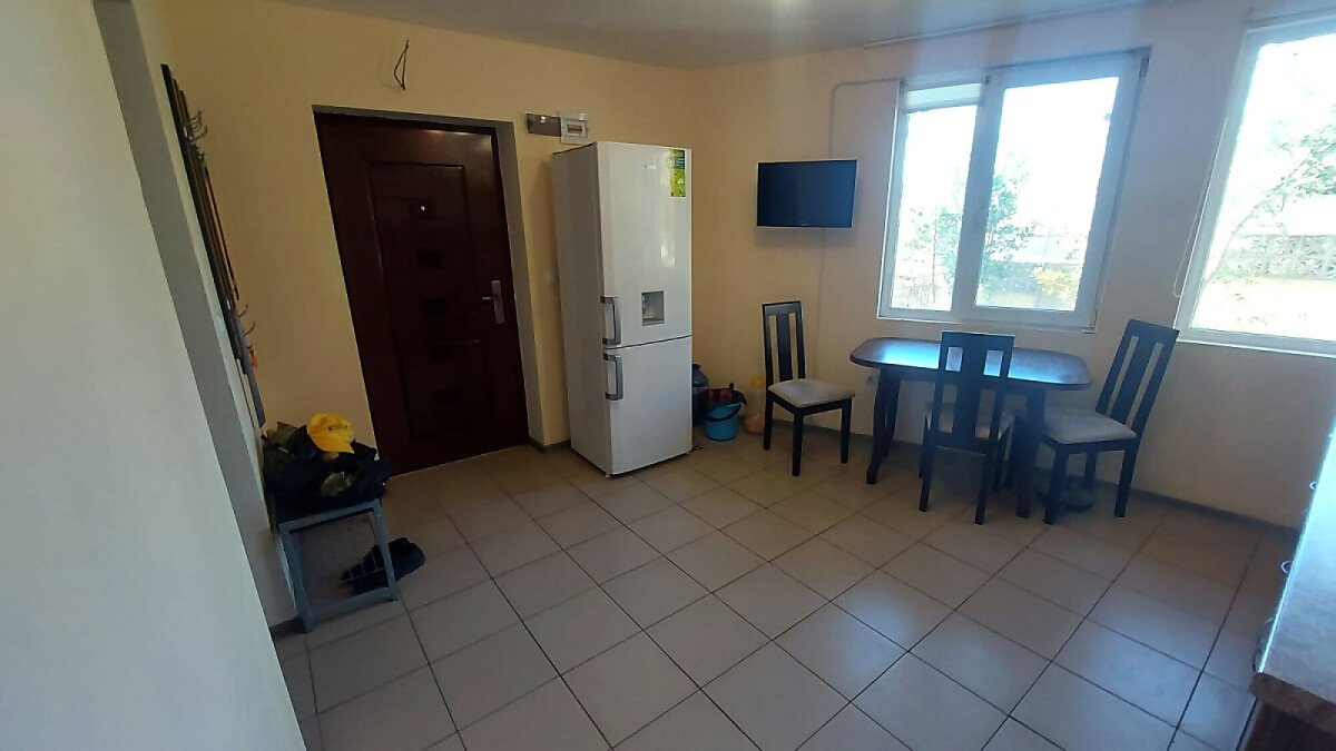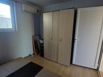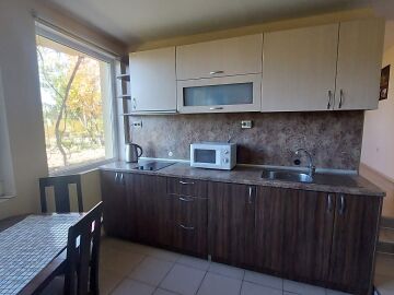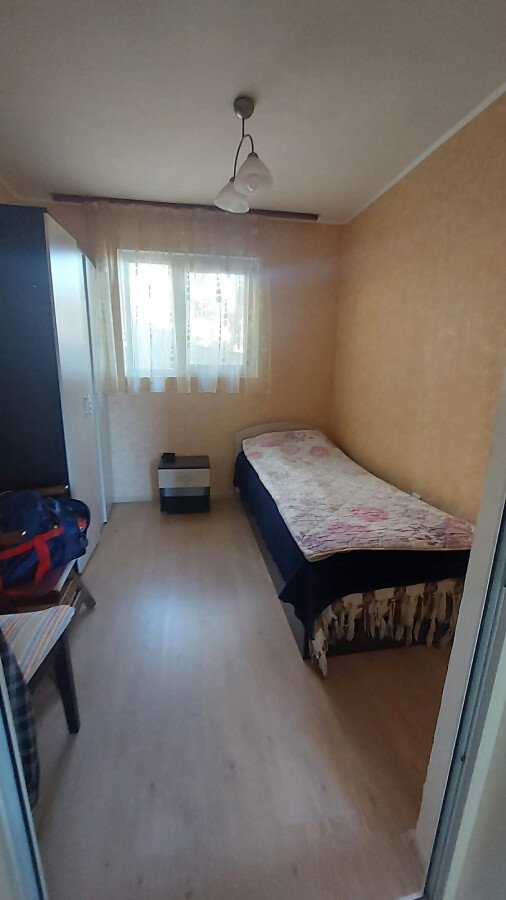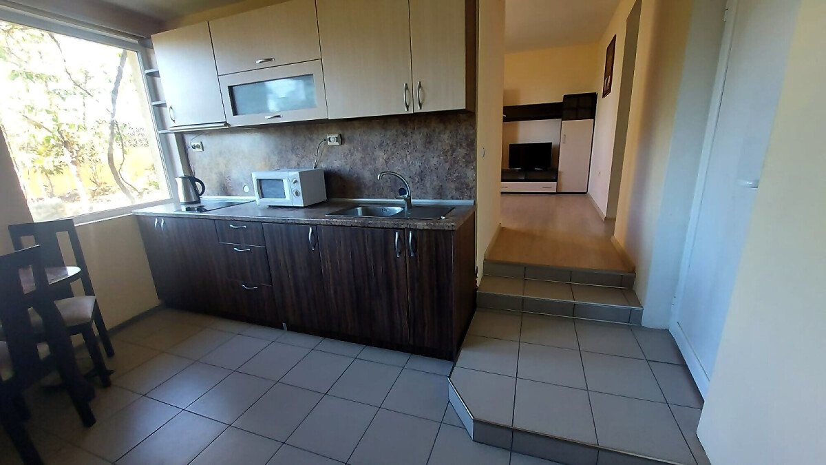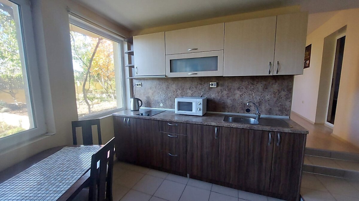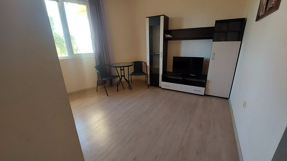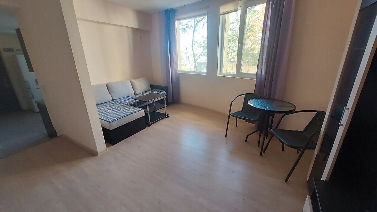 Апартаментът е разположен на партерен етаж и има следното разпределение – трапезария с кухненски бокс, всекидневна, две спални, баня с тоалетна и душ кабина. Към имота няма тераса, но сградата разполага с голям двор. Голямо предимство е липсата на такса поддръжка.