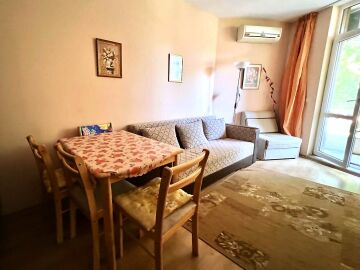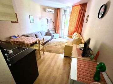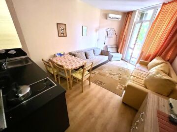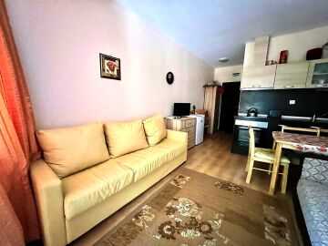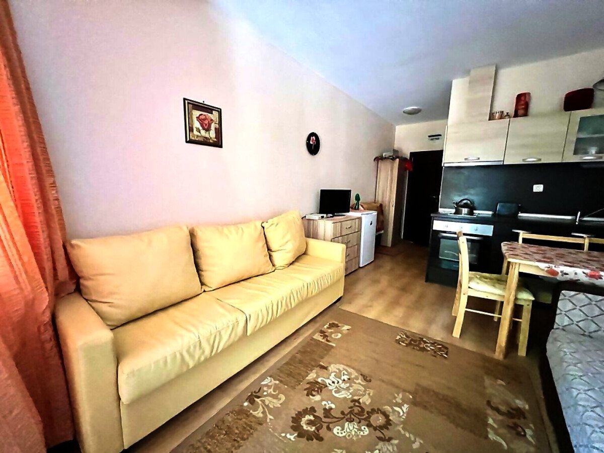 Студиото е разположено на втори етаж и се състои от входно антре, всекидневна с оборудван кухненски бокс и кът за хранене, баня с тоалетна и душ кабина, тераса с частична гледка към морето.