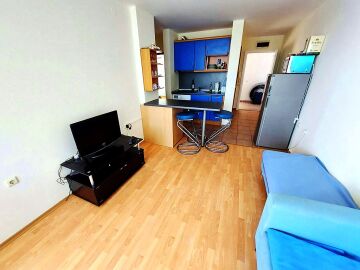 Предлагаме за продажба прекрасен тристаен апартамент с гледка към басейна в чудесния комплекс „Холидей Форт Клуб“, разположен на 850 метра разстояние от плажната ивица и в близост до голям аквапарк в Слънчев бряг. На пешеходно разстояние има всичко необходимо – супермаркет, разнообразие от магазини, автобусни спирки, сладкарница, заведения, летни атракции.