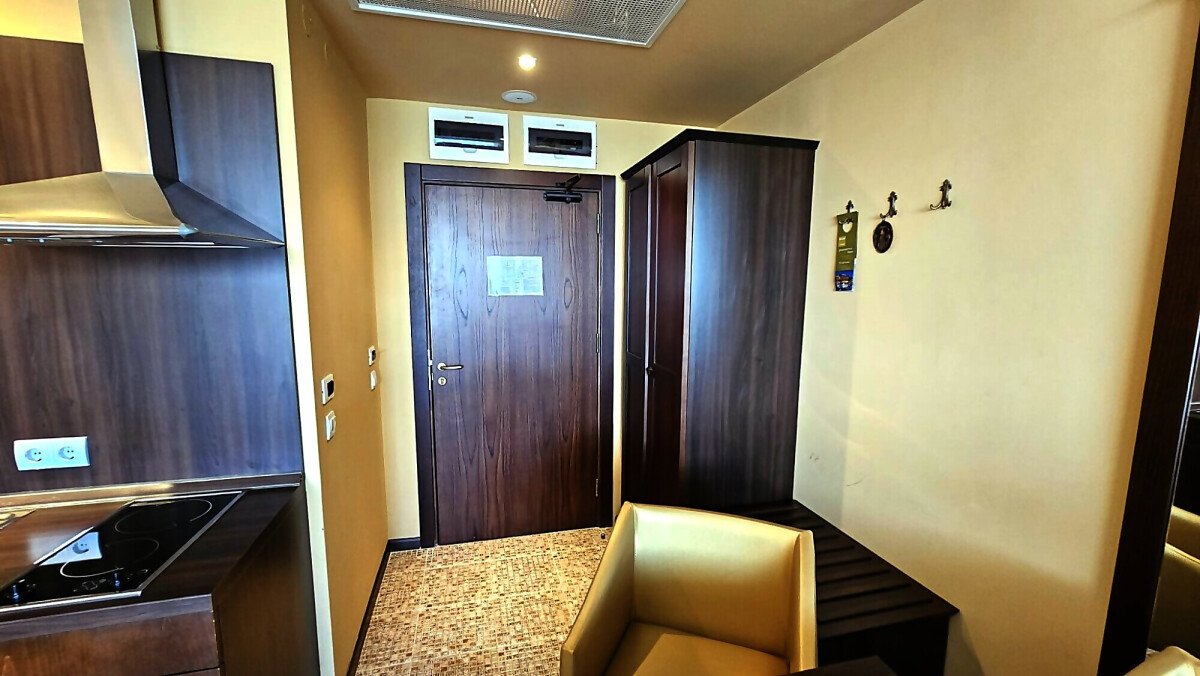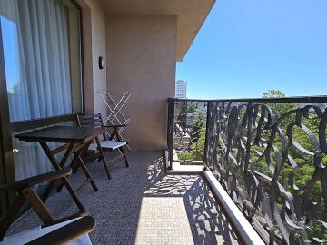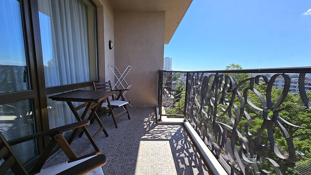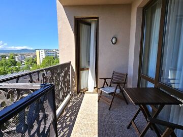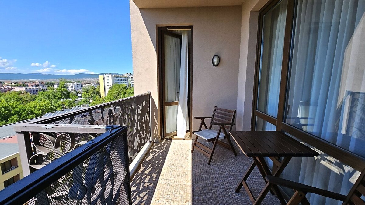 Апартаментът е разположен на шести етаж и има следното разпределение – входно антре, всекидневна с кухненски бокс и обособена зона за хранене, спалня, баня с тоалетна и вана, просторна тераса с чудесна гледка към планината. За продажба в отлично състояние, напълно обзаведен и оборудван с необходимата домакинска електротехника, готов за нанасяне или отдаване под наем.