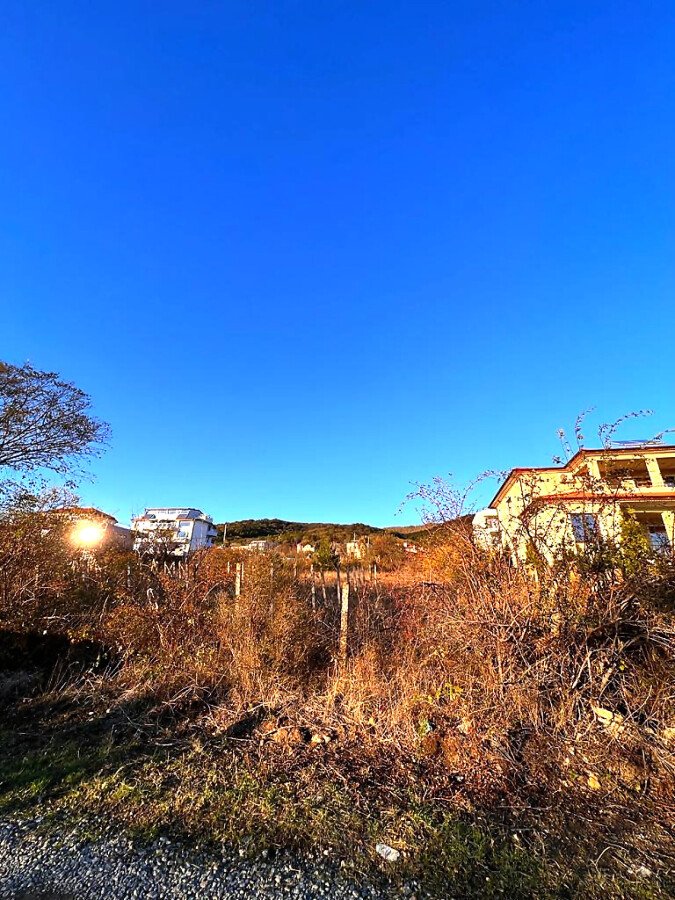 Парцелът е с площ 709 кв.м. и разкрива чудесна гледка както към морето, така и към планината. До него се стига по път на 500 метра от главната улица.