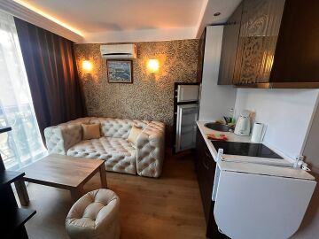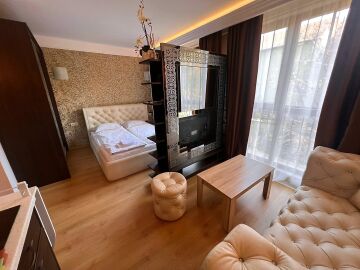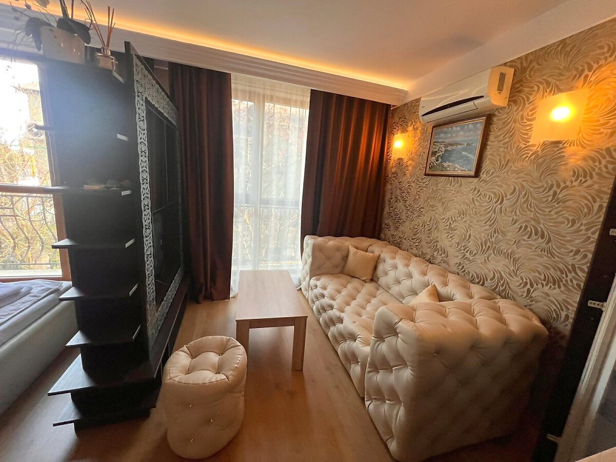 Предлагаме за продажба луксозно обзаведено студио в прекрасния комплекс „Хармони Палас“, разположен на 400 метра разстояние от плажната ивица в курорта Слънчев бряг. В непосредствена близост има всичко необходимо – голям супермаркет, заведения, летни атракции, автобусни спирки, разнообразие от магазини, ресторанти.