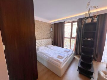 Апартаментът се продава обзаведен и оборудван, и има следното разпределение – входно антре, всекидневна с кухненски бокс и обособена спалня, баня с тоалетна и душ кабина.